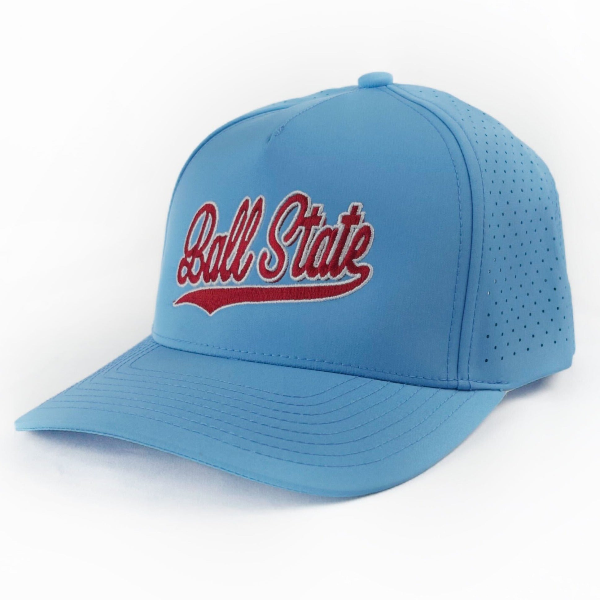 Go Cards! This Ball State hat is perfect for wearing to games or around campus. This hat features a light blue body with a red "Ball State" script embroidered on the front. This new BSU hat is great for showing your Cardinal spirit! This is an officially licensed collegiate product.