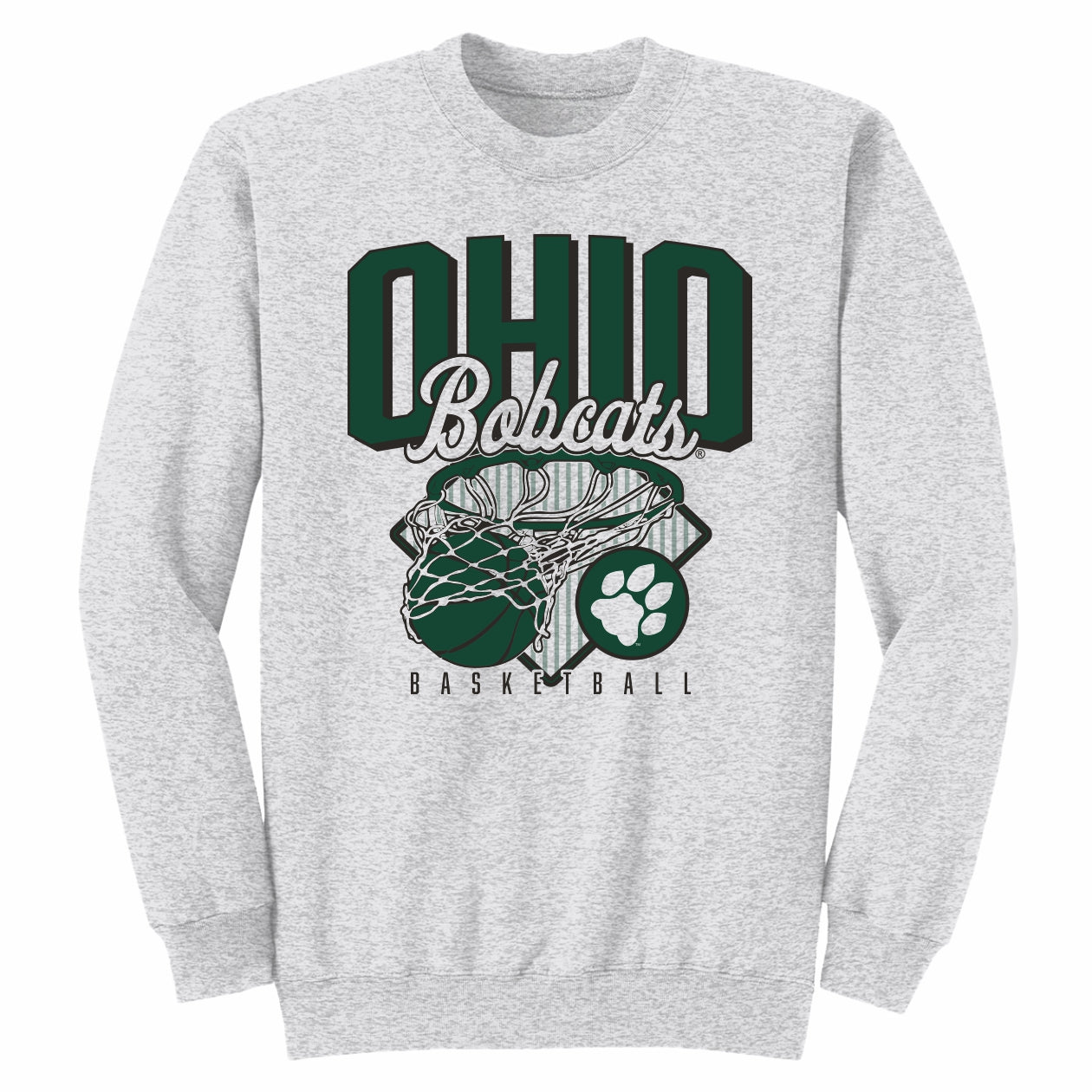 Wear green and white with pride in this Ohio Basketball sweatshirt! This vintage crew features a grey body with a green Ohio Basketball paw print design that every Ohio fan will love. Get your new OU hoops gear today and stand out in the crowd! Shop the Official Fanstore of the Ohio Bobcats for Bobcat apparel! This is an officially licensed collegiate product.