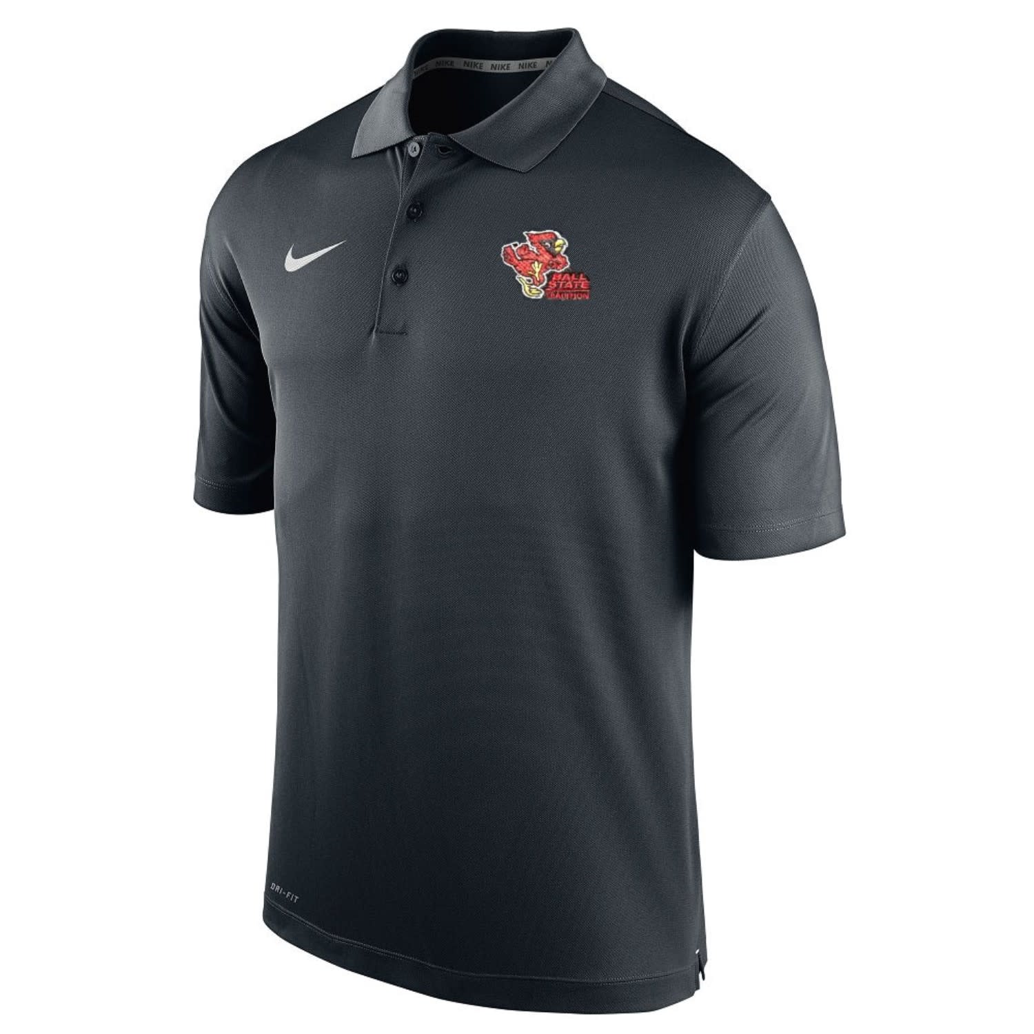 Stand out in the crowd with this Ball State polo! This men's Nike polo features a black body with a red Dancin' Charlie logo embroidered on the left chest that Cardinal fans will love. Wear this new Cardinals polo to games, tailgates, or around campus to show your BSU pride! This is an officially licensed collegiate product.