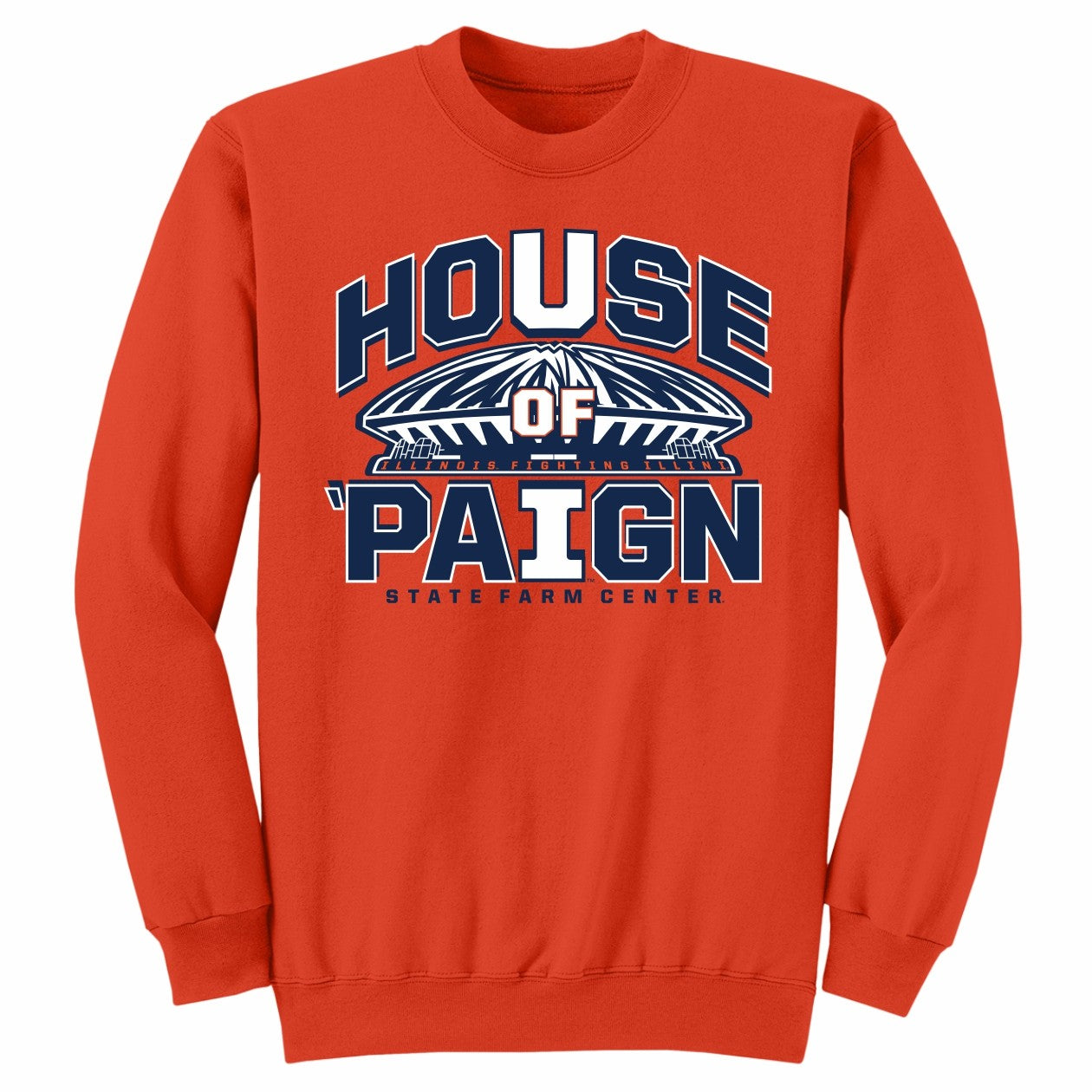Show your Orange and Blue pride! This Illinois Basketball sweatshirt is perfect for any Illini fan. This crewneck pullover features an orange body with a navy and white House of Paign/U of I design that makes it great for games, tailgates, or campus wear. Don’t miss out on this Fighting Illini hoops gear to show your Fighting Illini spirit! This is an officially licensed collegiate product.