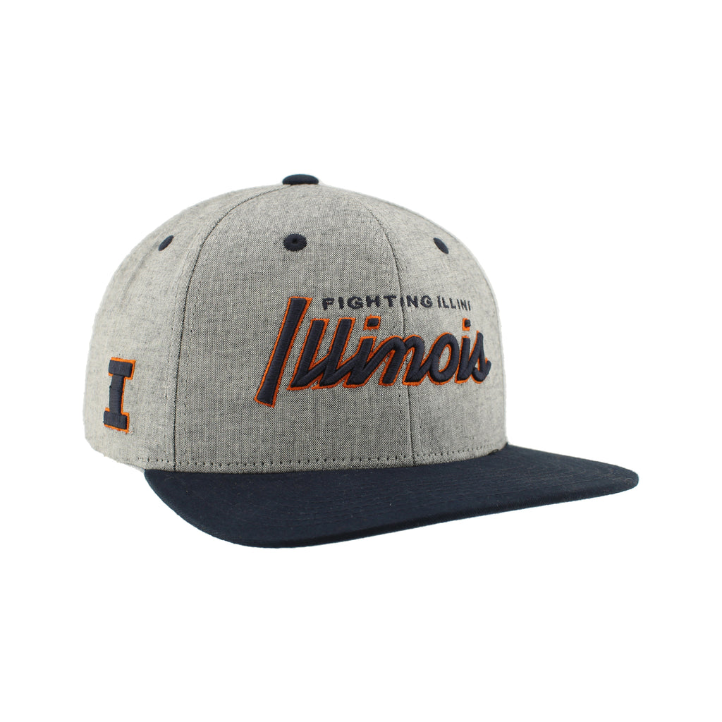 I-L-L! Pick up this Illinois hat to impress your friends! Once they see you wearing this grey script hat, they’re going to want one too! This Fighting Illini hat features a grey body with a navy script Illinois design alongside a navy brim and an adjustable snapback perfect for showing your Illini spirit at games, tailgates, or just around campus. This is an officially licensed collegiate product.