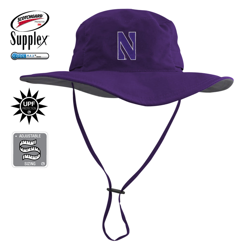 Hail to the Purple! This Northwestern hat is a great way to show your Wildcat spirit! This bucket hat features a purple body with a purple/white N logo on the front and an adjustable purple strap that is great for any occasion. Make sure to pick up this new NU hat to show off at games! Shop the Official Team Store of Northwestern Athletics for Northwestern apparel or gifts! This is an officially licensed collegiate product.