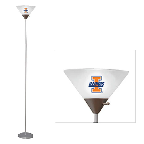 Go Illini! This Illinois Floor Lamp is perfect for your home, office, dorm, or tailgate setup! This sturdy lamp features a sleek design with an Illinois vault logo shade that will make your Fighting Illini spirit shine through—literally! Whether you're lighting up your study space or adding team pride to your fan cave, this lamp is the perfect way to show off your orange and blue pride. This is an officially licensed collegiate product.