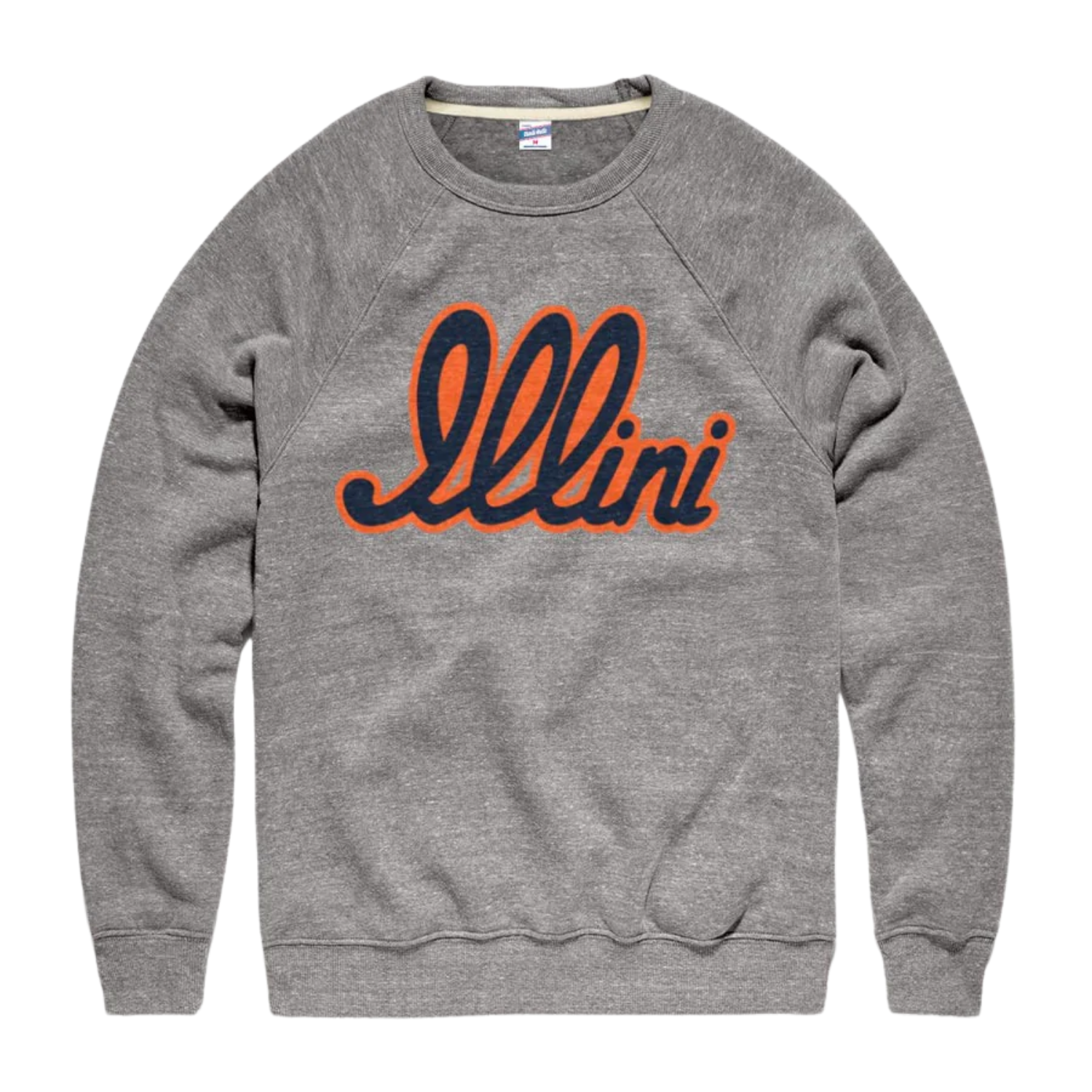 Celebrate the Fighting Illini spirit with this classically styled Vintage Grey crewneck sweatshirt. This new and improved garment is absurdly soft and contains a perfect relaxed fit, just like your favorite childhood crewneck. Vintage Illini screenprint graphic. Officially Licensed