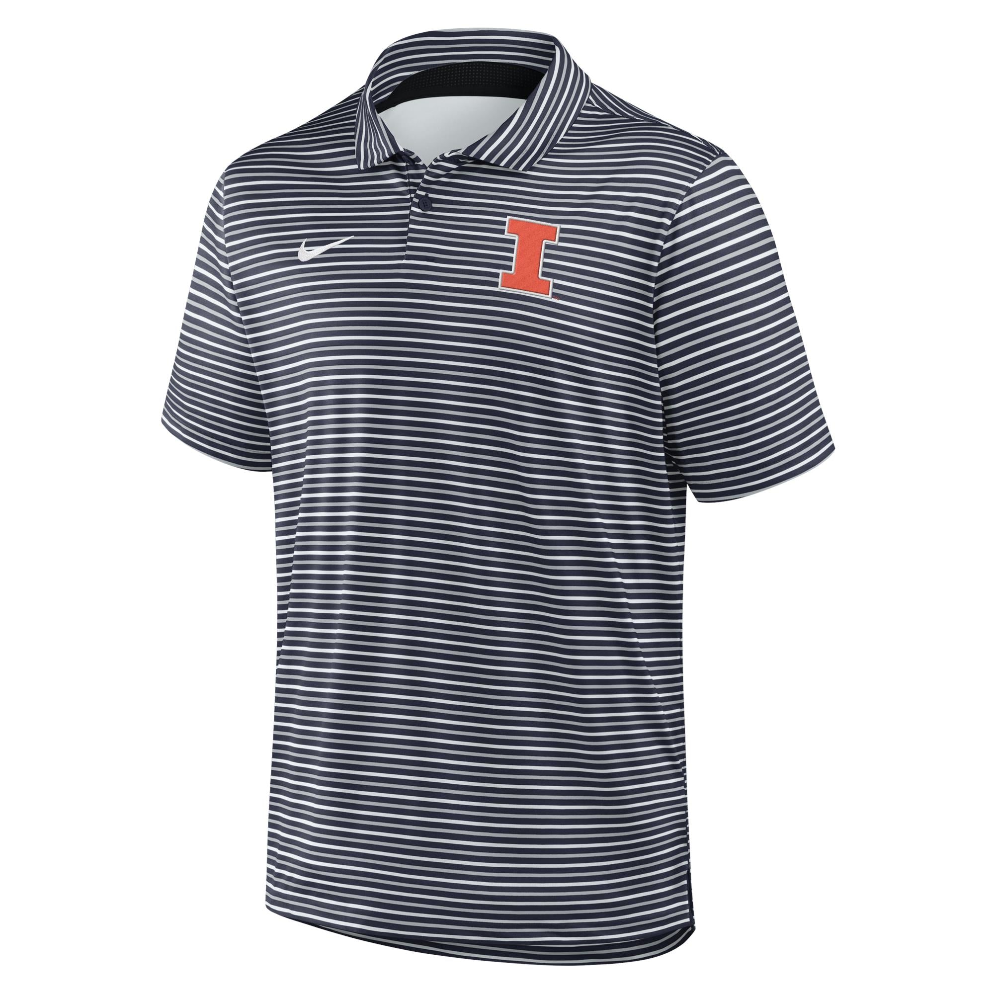 I-L-L! Pick up this Illinois polo to impress your friends! Once they see you wearing this new Nike polo, they’re going to want one too! This new U of I polo features a navy/white/grey striped body with an orange Block I on the left chest perfect for showing your Illini spirit at games, tailgates, or just around campus. This is an officially licensed collegiate product.