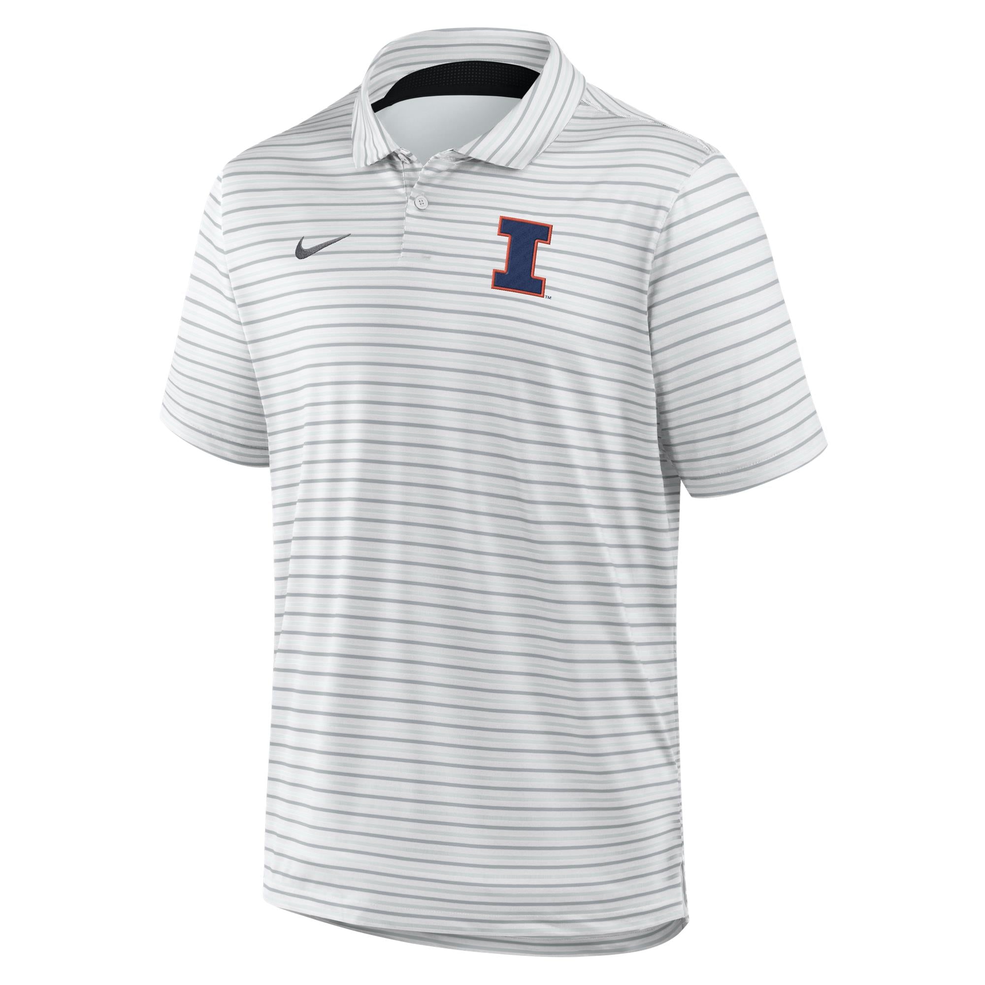Hail to the orange! This Illinois polo is a great way to show your Fighting Illini spirit! This new Nike polo features a white body with grey stripes and a navy Block I on the left chest that is great for any occasion. Make sure to pick up this U of I polo to show off your Illini pride! This is an officially licensed collegiate product.