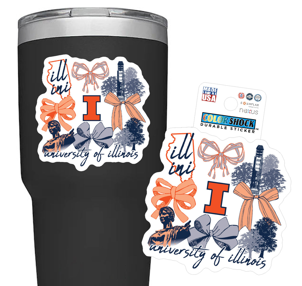 Illinois Sticker Campus Icons Bows Script