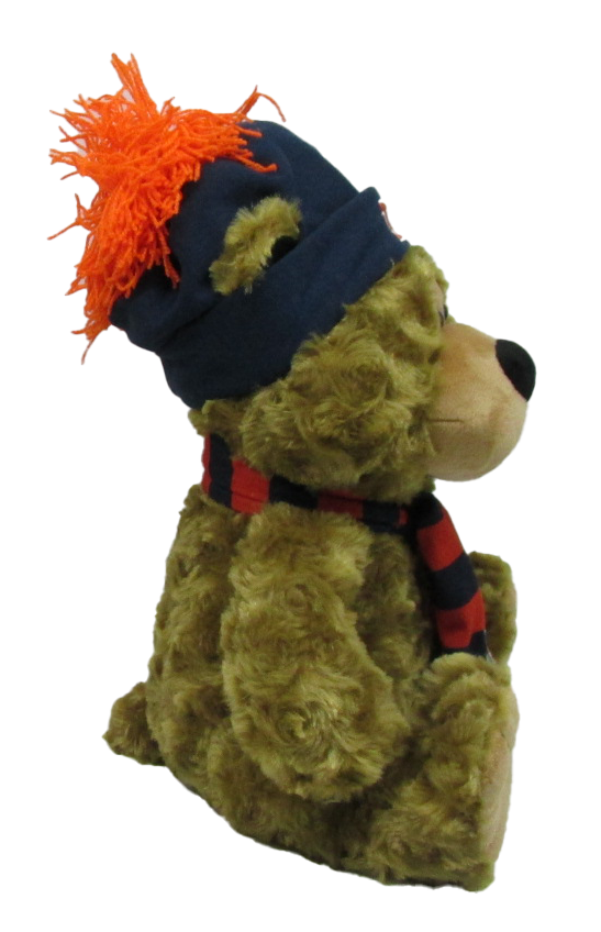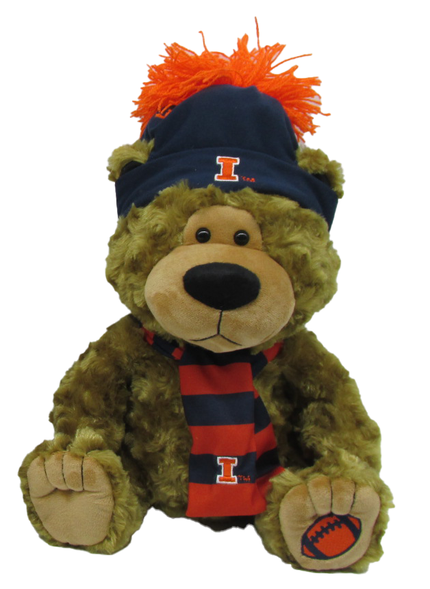 Go Illini! This Illinois plush bear is perfect for you or your kiddo! This stuffed bear is wearing a navy hat with an orange Block I/pom and a navy/orange striped scarf that will make your Illinois spirit shine through! This is an officially licensed collegiate product.