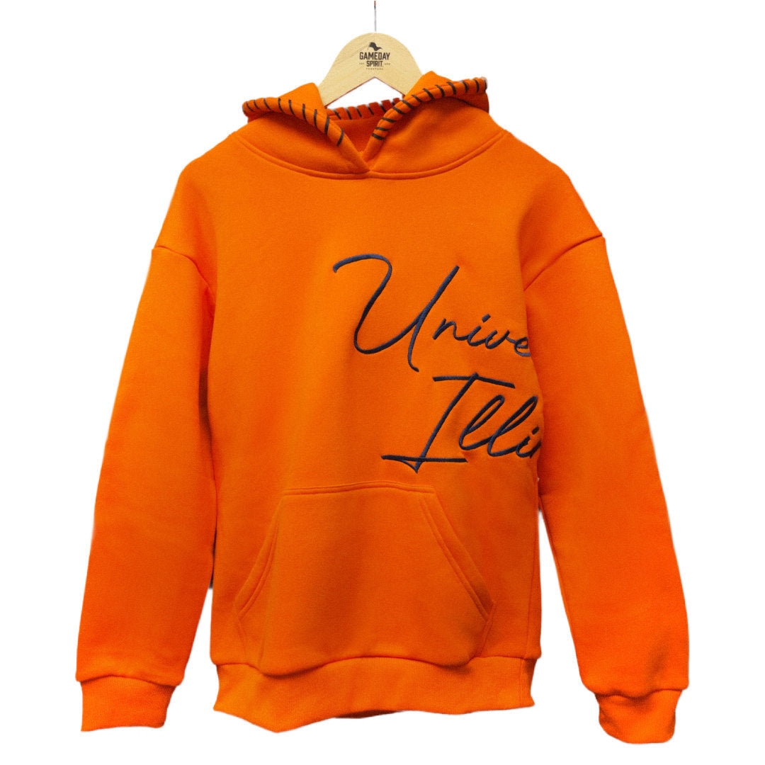 ILL-INI! Gear up for game day with this Illinois Fighting Illini hood. This pullover features high-detail moon stitch construction with navy side embroidery that Illini fans will love. Show your school spirit with this Fighting Illini orange stitched hood and cheer on Illinois in style! This is an officially licensed collegiate product.