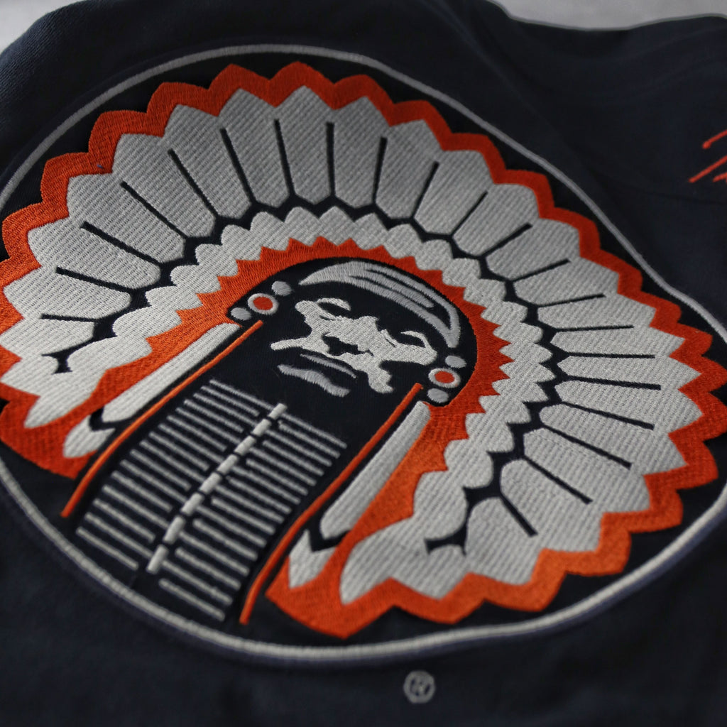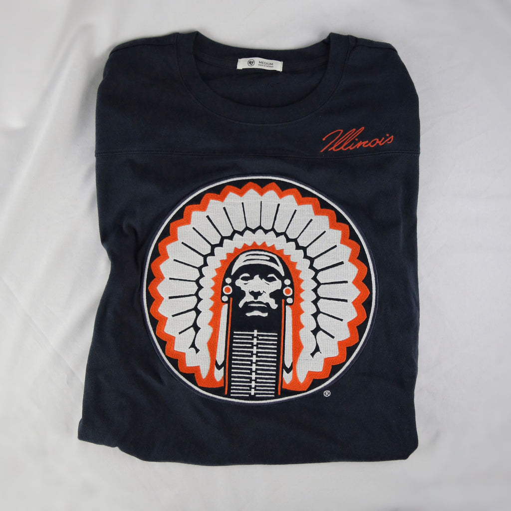 Show your Illini spirit with a stylish twist in the Illinois Fighting Illini Women’s '47 Brand Chief Illiniwek Timeless Tee. This flattering navy tee features a bold screen-printed Chief Illiniwek logo on the front and a vintage-inspired locker tag on the lower left for added detail.