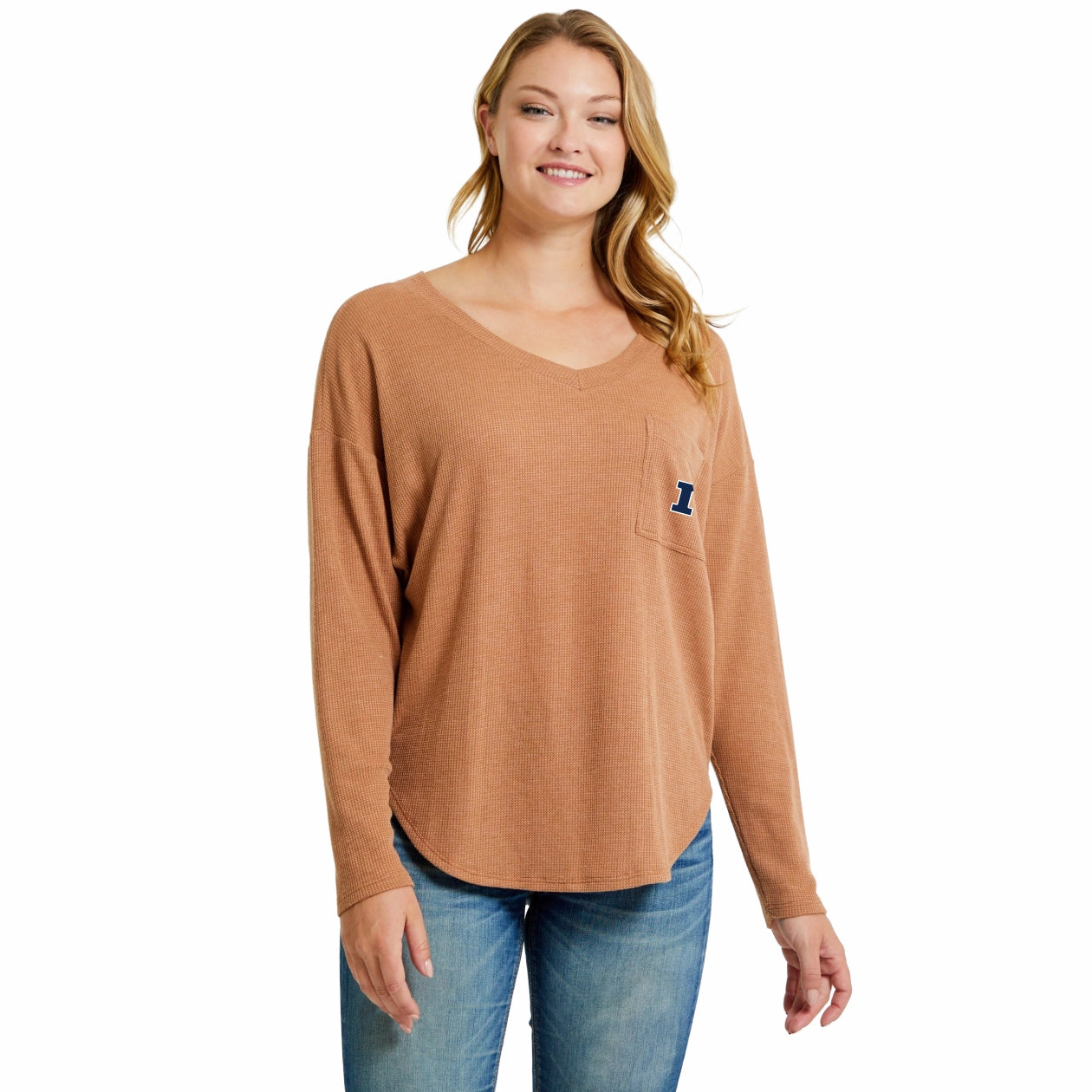 Hail to the orange! This Illinois shirt is a great way to show your Fighting Illini spirit! This long-sleeve v-neck features a brown waffle knit body with a navy Block I on the left that is great for any occasion. Make sure to pick up this new Illinois shirt to show off your Illini pride! This is an officially licensed collegiate product.