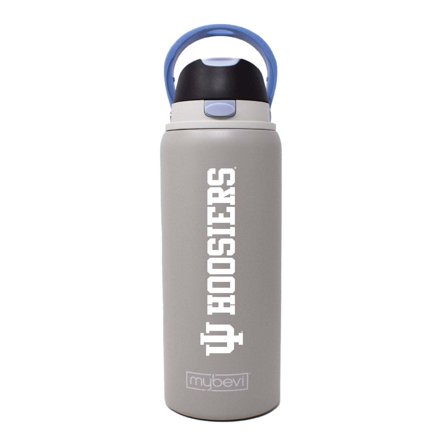 Go Hoosiers! This Indiana water bottle is perfect for staying hydrated on the go! This 32oz bottle features a stainless grey body with a white IU Hoosiers design and blue strap/black lid that will make your Indiana spirit shine through! This is an officially licensed collegiate product.