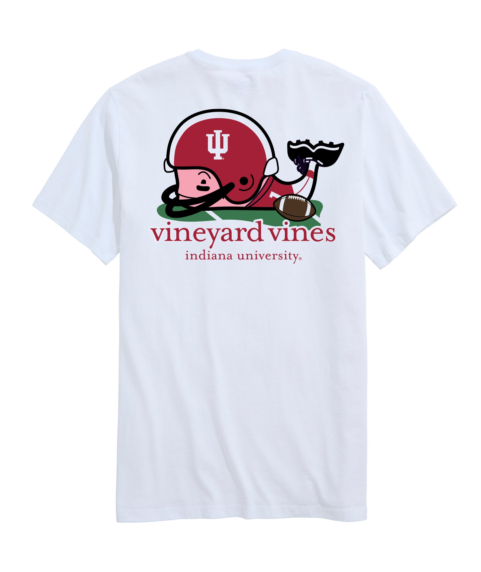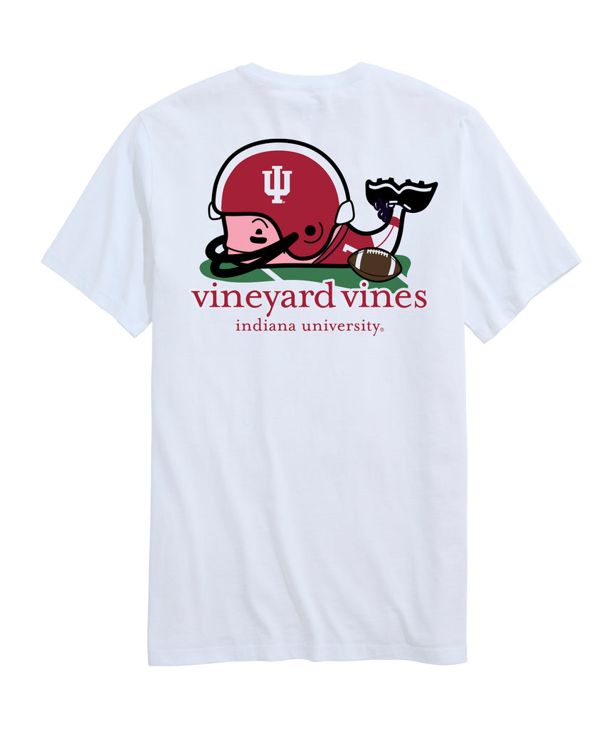 Celebrate Hoosier football in preppy style with the Indiana Hoosiers Football Vineyard Vines White Short Sleeve Pocket Tee! This crisp white tee features a printed IU logo on the left chest pocket, paired with the iconic Vineyard Vines whale rocking an IU helmet and uniform on the back for a fun, team-spirited twist. Crafted with Vineyard Vines’ signature soft, lightweight fabric, this unisex tee offers a comfortable, relaxed fit, perfect for casual outings or showcasing your Indiana University pride. A must-have for Hoosiers fans who love a blend of classic prep and football flair, this tee is your go-to for effortless style. Grab yours now!