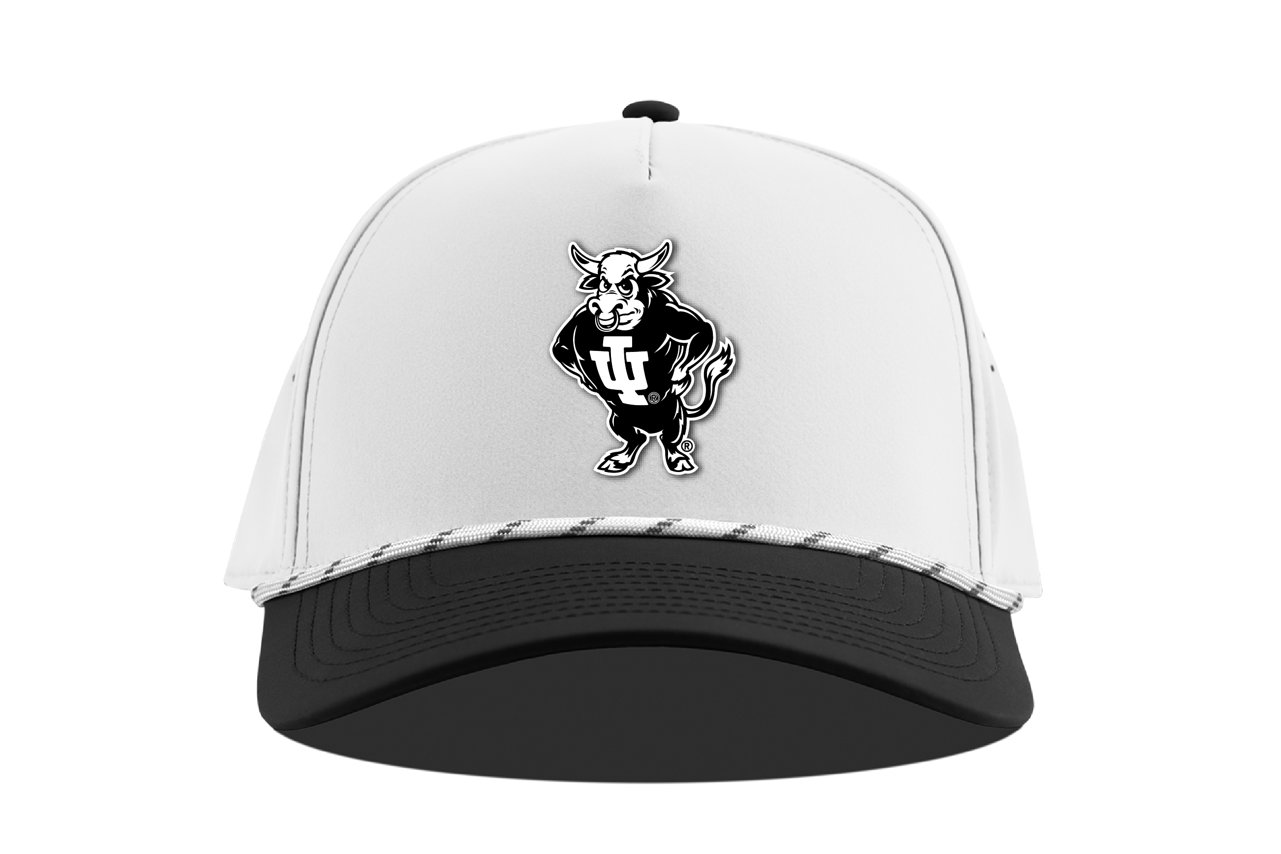 Show your Hoosier pride in this new Indiana hat! This new IU hat features a white body with a vintage Hoosier the Bison mark embroidered on the front, alongside a black brim and adjustable snapback perfect for showing off around campus. Impress your friends with this vintage Bison design and make them wish they had one too! This is an officially licensed collegiate product.