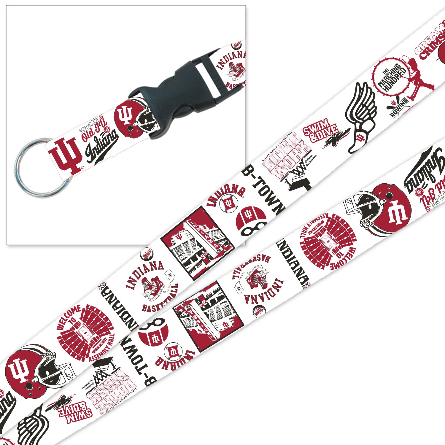 Go Big Red! Pick up this Indiana lanyard to show your Hoosier spirit everywhere you go. This lanyard features a 3/4" wide white body with a variety of red/black Indiana sports designs perfect for Hoosier fans. Once people see you with this IU athletics lanyard, they’ll want one too! This is an officially licensed collegiate product.