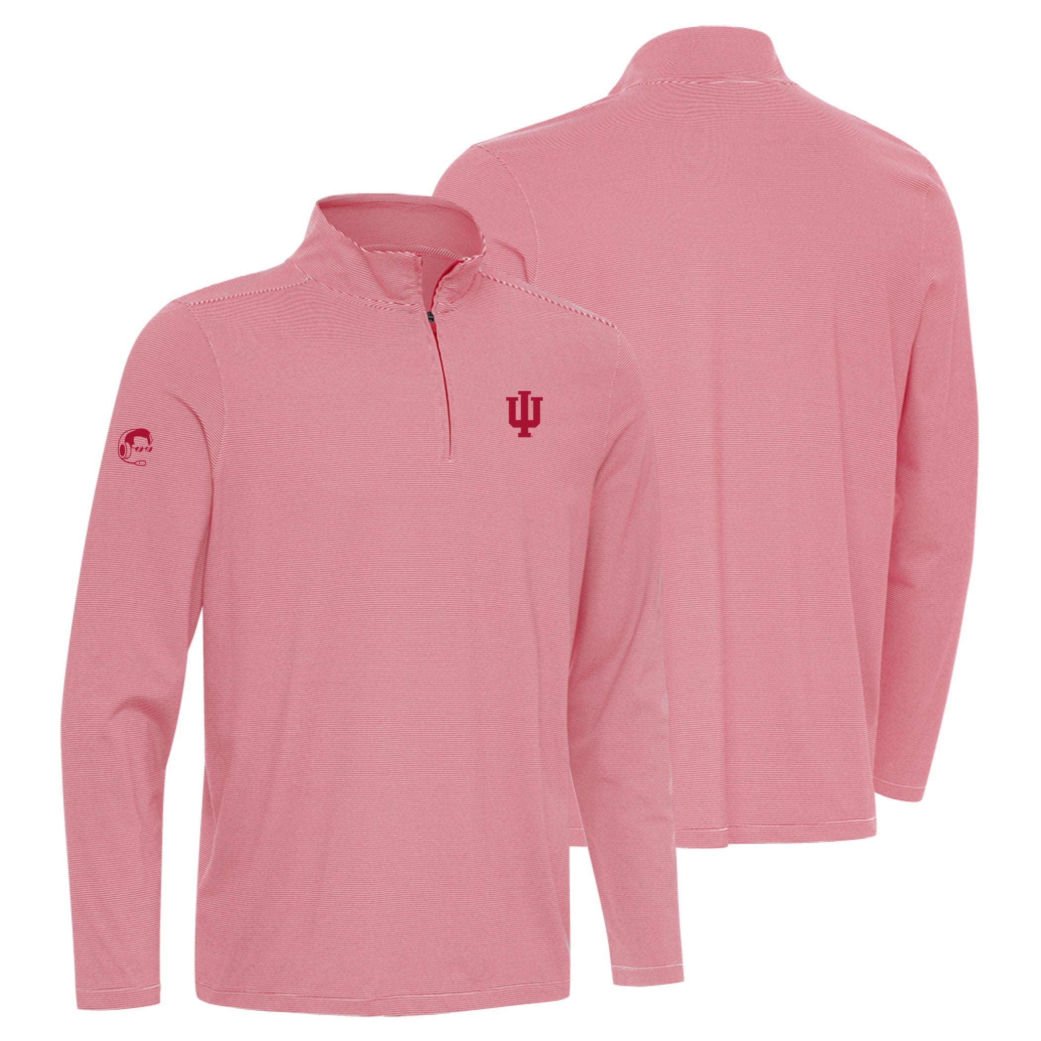 Go Hoosiers! This Indiana quarter-zip is perfect for wearing to games or around campus. This men's pullover features a subtly-striped red/white body with a red IU trident embroidered on the left chest, and a custom-made Cignetti logo embroidered on the right sleeve. This IU Football piece is great for showing your Hoosier spirit! This is an officially licensed collegiate product.