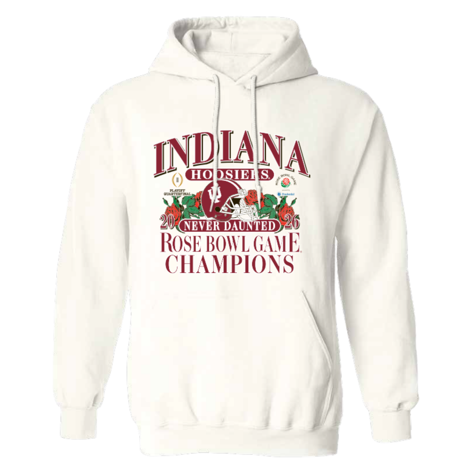 Show your Hoosier pride in this new Indiana Football 2026 Rose Bowl Champions Hoodie! This IU Football hoodie features a white body with a bold red Rose Bowl Game Champions design on the front perfect for celebrating the team's historic win. Impress your friends with this Rose Bowl Champions merch and make them wish they had one too! This is an officially licensed collegiate product.