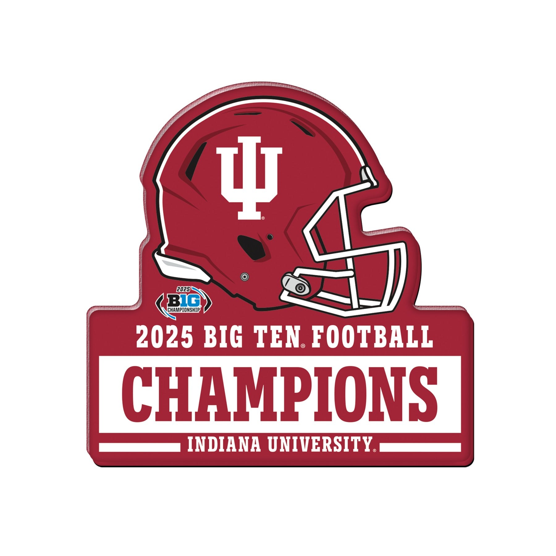 Show your candy-stripe pride with this Indiana Football Big Ten Champions magnet! This magnet features a red and white B1G Champs design that makes it stand out. Great for celebrating the team's historic season, this Hoosiers magnet is the perfect way to rep Indiana! This is an officially licensed collegiate product.