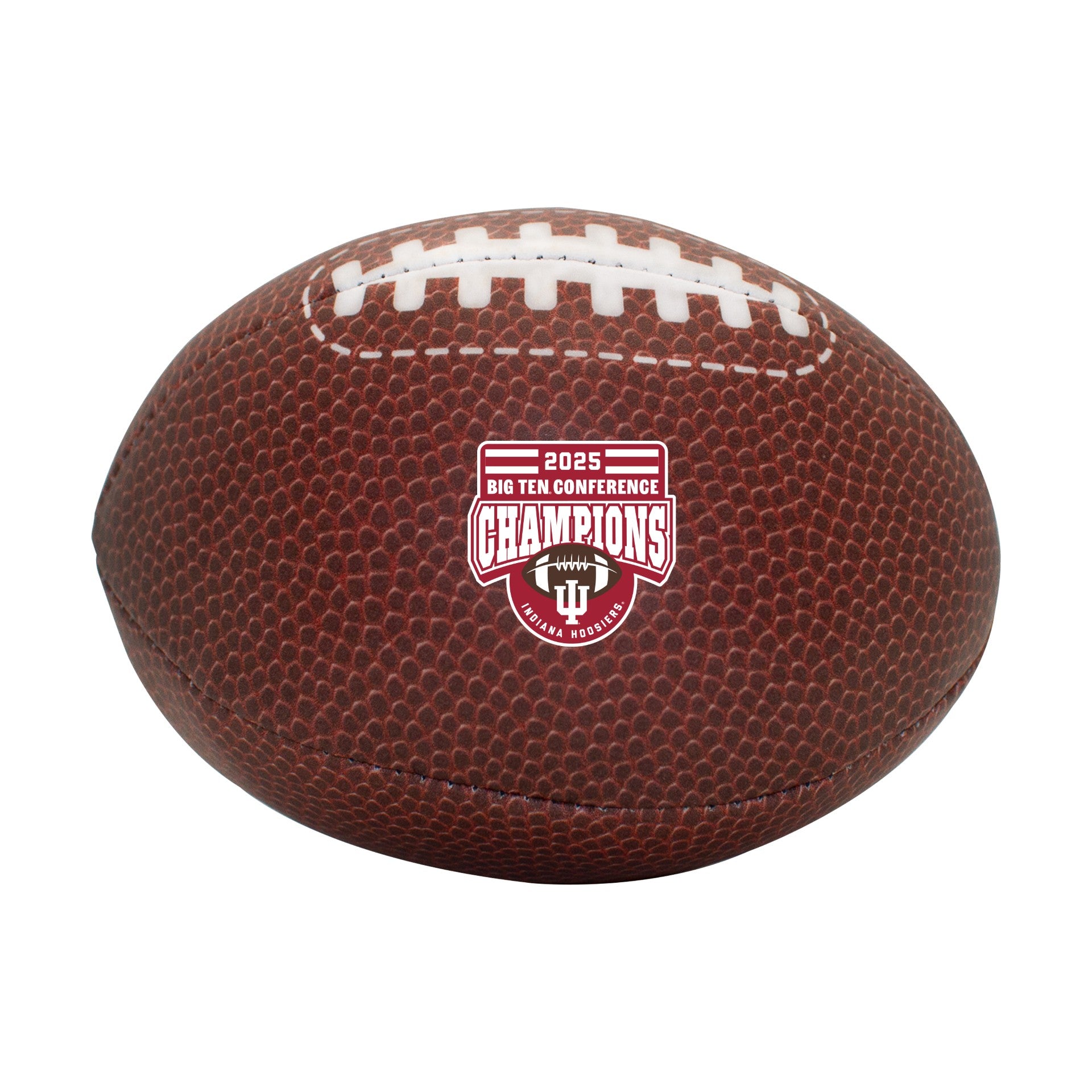 Go Big Red! Pick up this Indiana Football Big Ten Champs merch to show your Hoosier spirit. This plush football features a football-like pattern with a red and white Big Ten Conference Champions logo perfect for celebrating the Hoosiers' historic season. Once people see you with this IU Football, they’ll want one too! This is an officially licensed collegiate product.