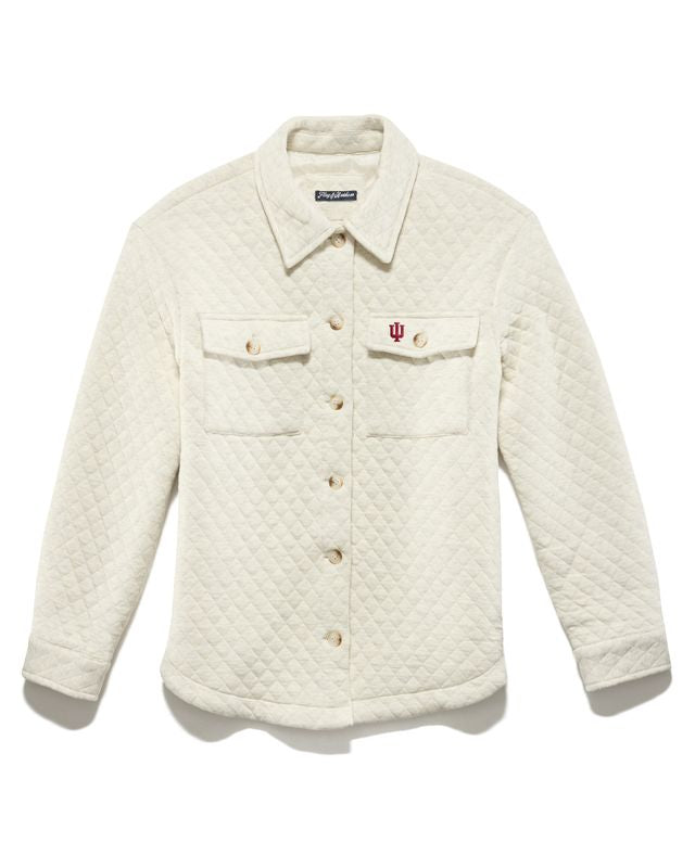 Go IU! Fight! Fight! Fight! This Indiana jacket will show that you are a true fan and is perfect for game days! This women's jacket features an off-white quilted body with a red IU trident on the left pocket. Make sure to get this new IU jacket today! This is an officially licensed collegiate product.