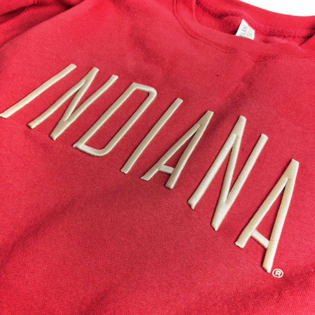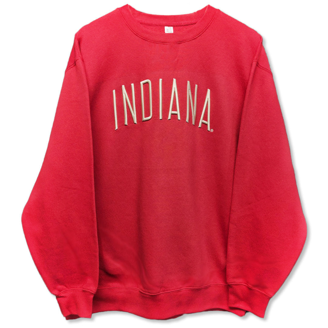 Go Hoosiers! This Indiana sweatshirt is great for wearing to a game or just around campus! Featuring a red fleece body with a raised "Indiana" embroidered on the front, you will love this new IU pullover. This comfy crewneck sweatshirt makes it easy to show off your Indiana pride! This is an officially licensed collegiate product.