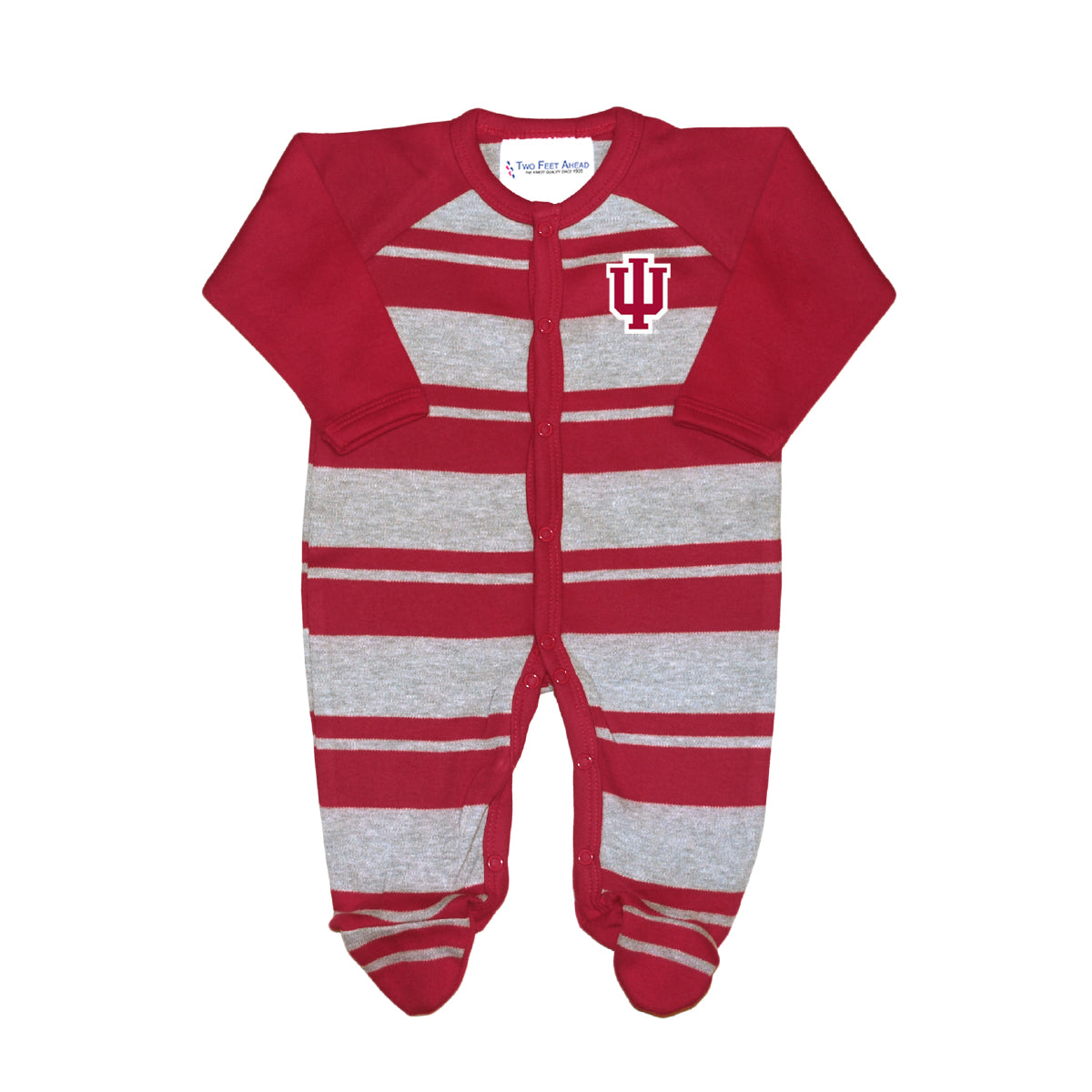 Show your little one's candy-stripe pride with this infant onesie! This IU baby gear features a red and grey striped body with an IU trident that makes it stand out. Whether you’re at home or a game, this baby outfit is the perfect way for your little one to rep Indiana! This is an officially licensed collegiate product.