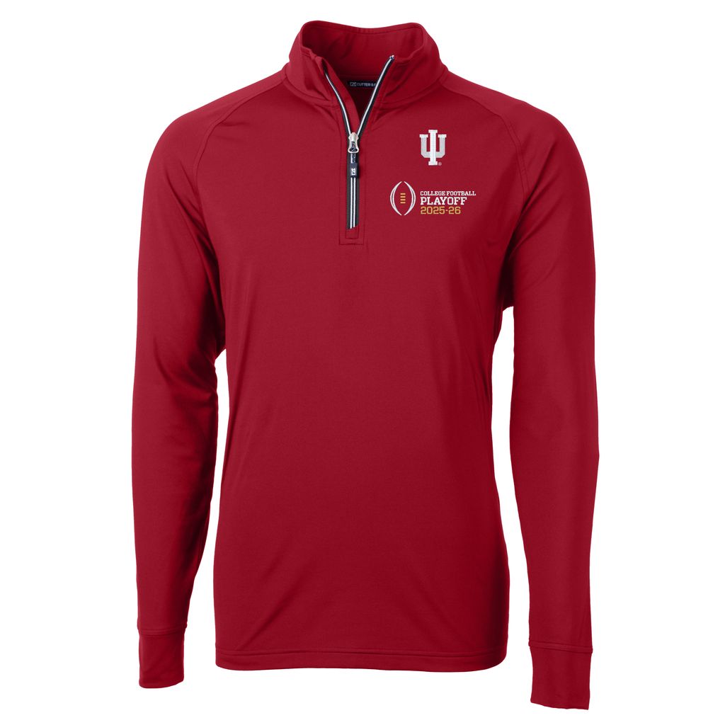 Go IU! Fight! Fight! Fight! This Indiana Football 2026 CFP Cutter & Buck Men's Quarter-Zip will show that you are a true fan and is perfect for celebrating the team's historic season! This men's pullover features a dark red body with a white/gold CFP patch under an embroidered IU logo on the left chest. Make sure to get this Indiana CFP merch today! This is an officially licensed collegiate product.