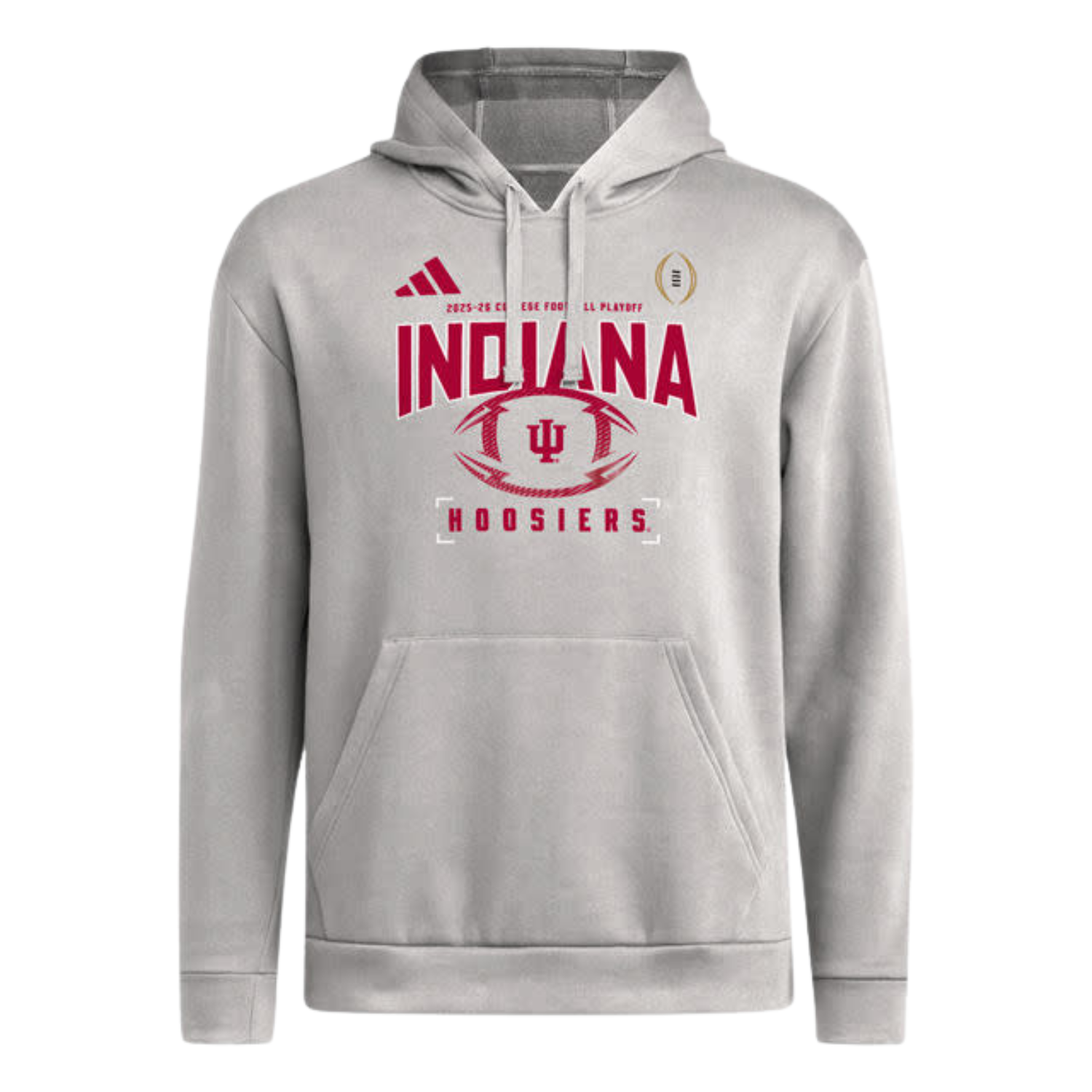 Go Hoosiers! This Indiana Football College Football Playoff hoodie is perfect for celebrating the Hoosiers' historic season! This Adidas hoodie features a grey fleece body with a red Indiana Football design on the front, alongside a gold CFP logo and wording that will make your Indiana spirit shine through! This is an officially licensed collegiate product.