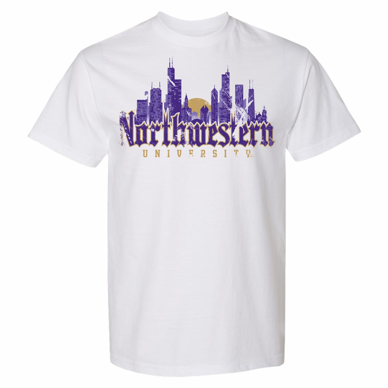 Northwestern University White Gothic Chicago Skyline T-Shirt