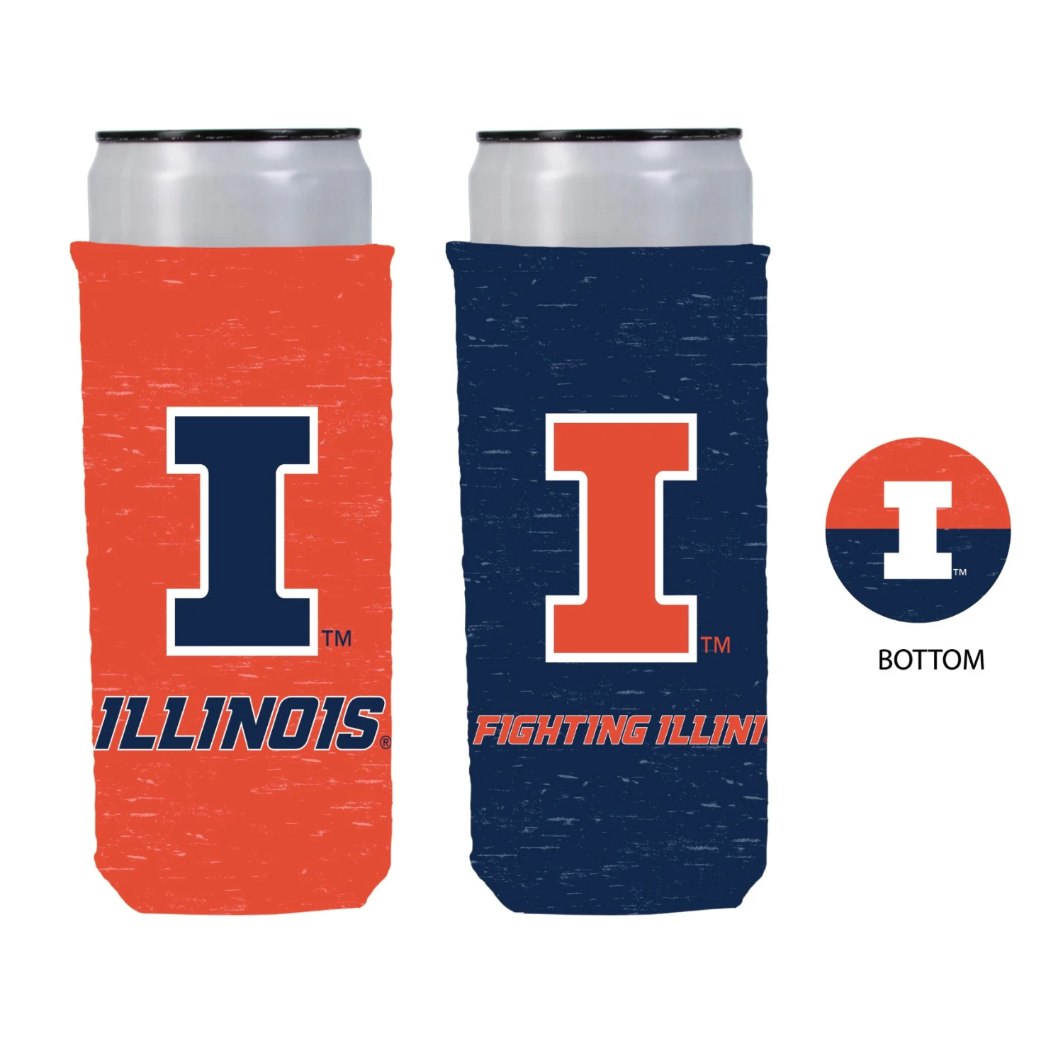 I-L-L! Pick up this Illinois koozie to really show your Illini spirit! This can koozie features a slim orange and blue double-sided design that will make an unforgettable addition to your tailgate gear! Get one online or in-store today! This is an officially licensed collegiate product.