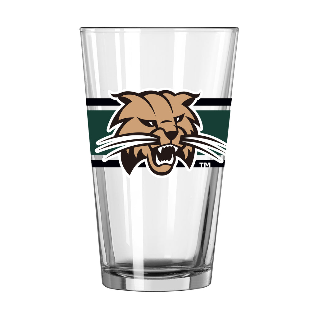 Go Bobcats! This Ohio pint glass is perfect for watching the game at home! This 16oz pint glass features a clear body with a black/green stripe around the middle and a Bobcat logo that will really make your Ohio spirit shine through! Shop the Official Fanstore of the Ohio Bobcats for Bobcat merchandise! This is an officially licensed collegiate product.