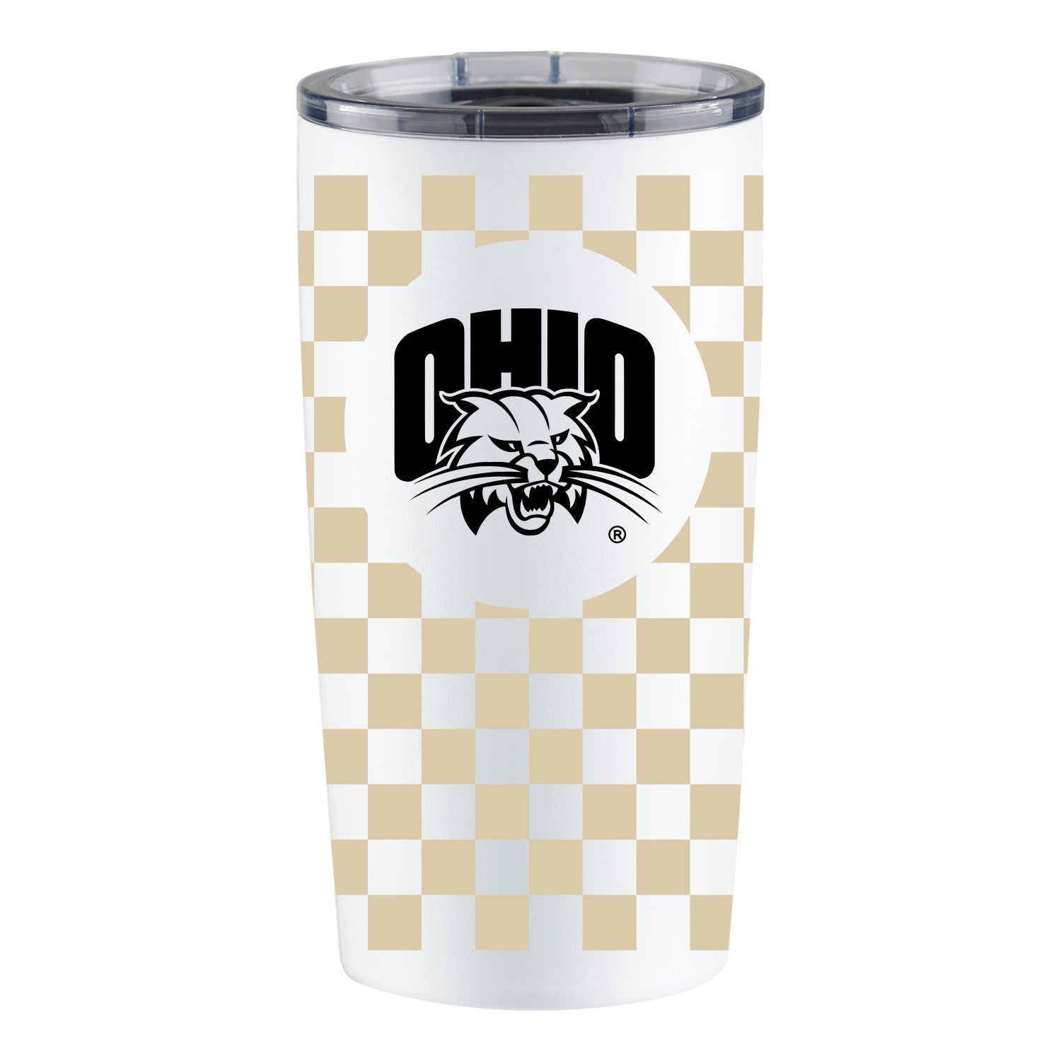 Go Bobcats, go! This Ohio tumbler is perfect for any type of fan. This 20oz tumbler includes a white/tan checkered design with an Ohio logo on the front that’s great for any occasion. Show your school pride with this OU drinkware! Shop the Official Fanstore of the Ohio Bobcats for Bobcat apparel! This is an officially licensed collegiate product.