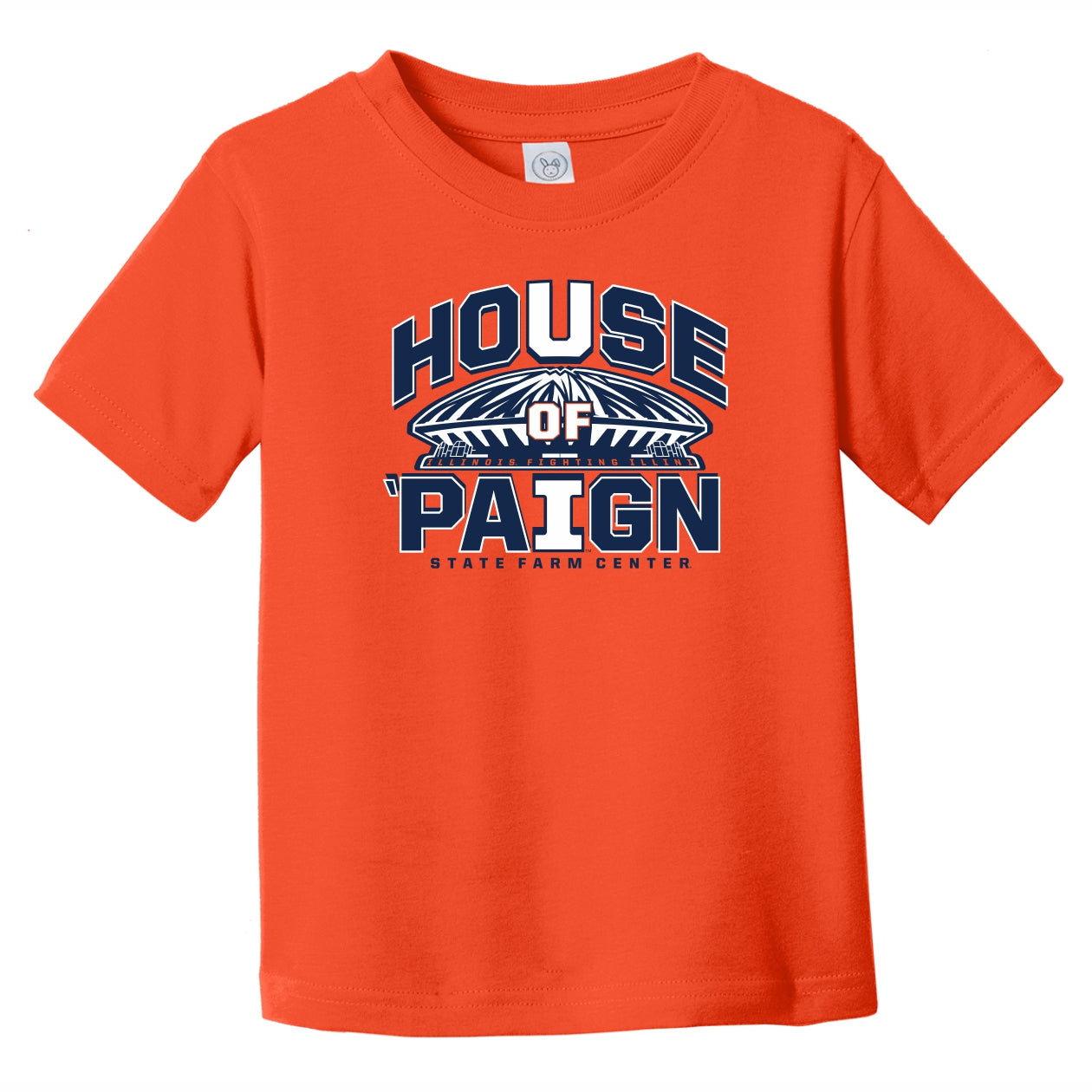 I-L-L! Pick up this Illinois Basketball tee to show your little one's Illini spirit! This toddler shirt features an orange body with a navy/white House of 'Paign/U of I/SFC design that will make an unforgettable addition to your kiddo's Illini wardrobe! Get one online or in-store today! This is an officially licensed collegiate product.