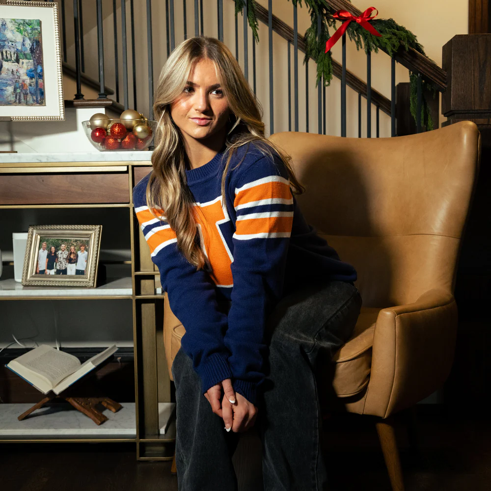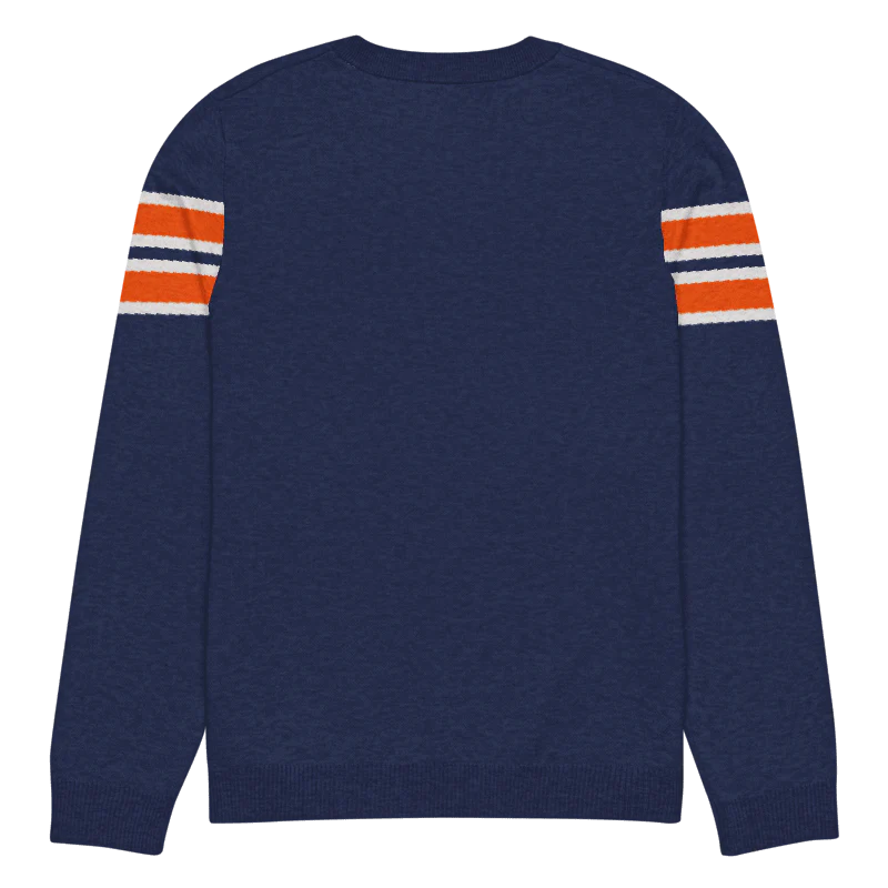 I-L-L! Pick up this Illinois sweater to impress your friends! Once they see you wearing this sweater, they’re going to want one too! This unisex piece features a navy knit body with orange accents on the arms and an orange/white Block I on the front perfect for showing your Illini spirit at games, tailgates, or just around campus. This is an officially licensed collegiate product.