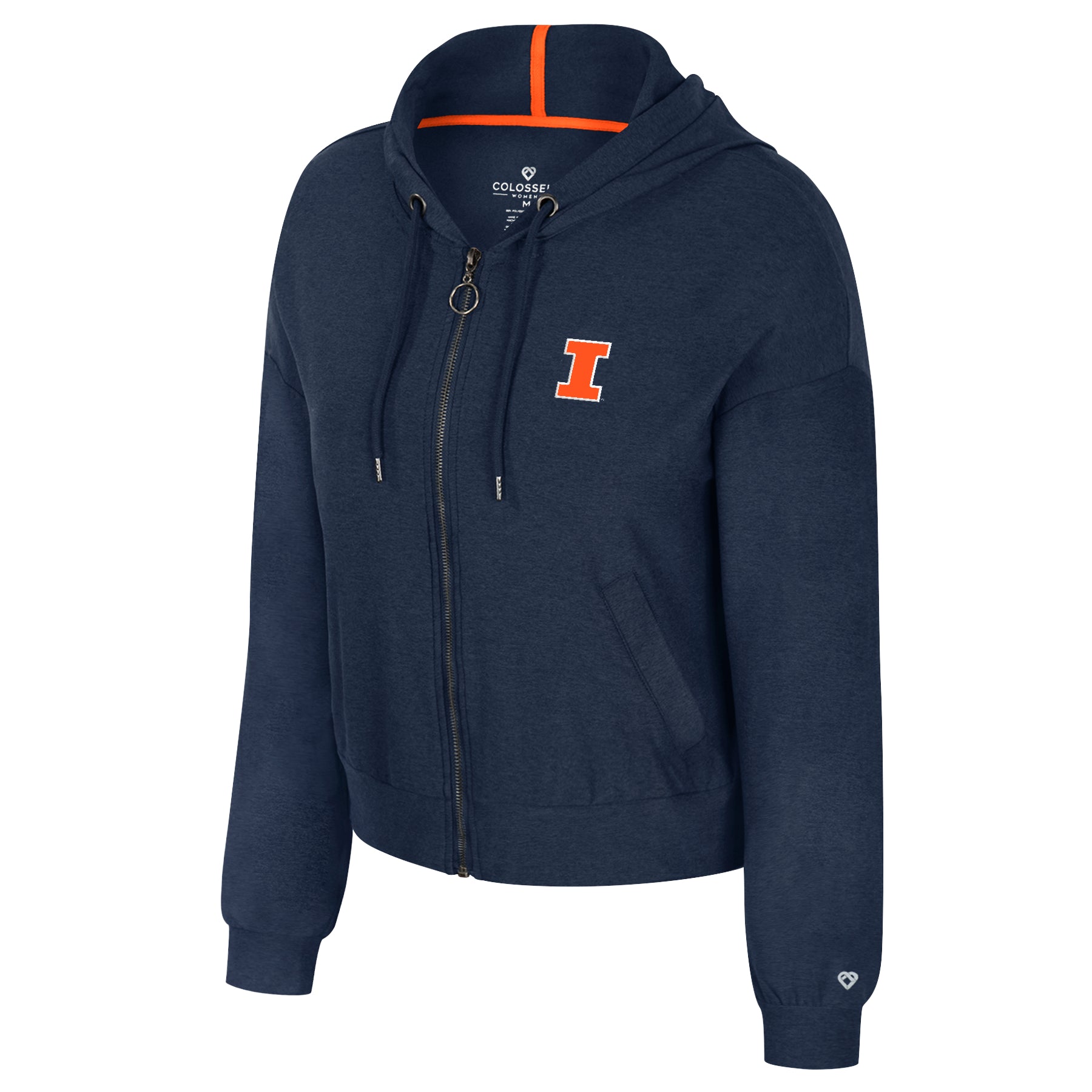 Hail to the orange! This Illinois hoodie is a great way to show your Fighting Illini spirit! This women's full-zip hoodie features a navy body with an orange Block I on the left that is great for any occasion. Make sure to pick up this U of I sweatshirt to show off your Illini pride! This is an officially licensed collegiate product.