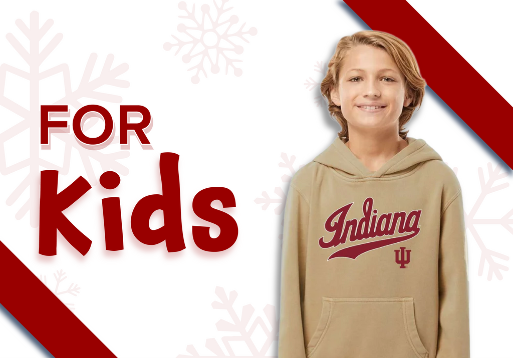 Shop The Indiana Shop's selection of Indiana gifts for the whole family! With a wide availability of gifts including Indiana hoodies, our exclusive BOGO tees, Candy Stripe, and more, you can find the perfect gift for any Hoosier fan in your life! Featuring selections for men, women, kids, and even pets, The Indiana Shop's Holiday Gift Guide has everything you need to stock up for the holiday season.