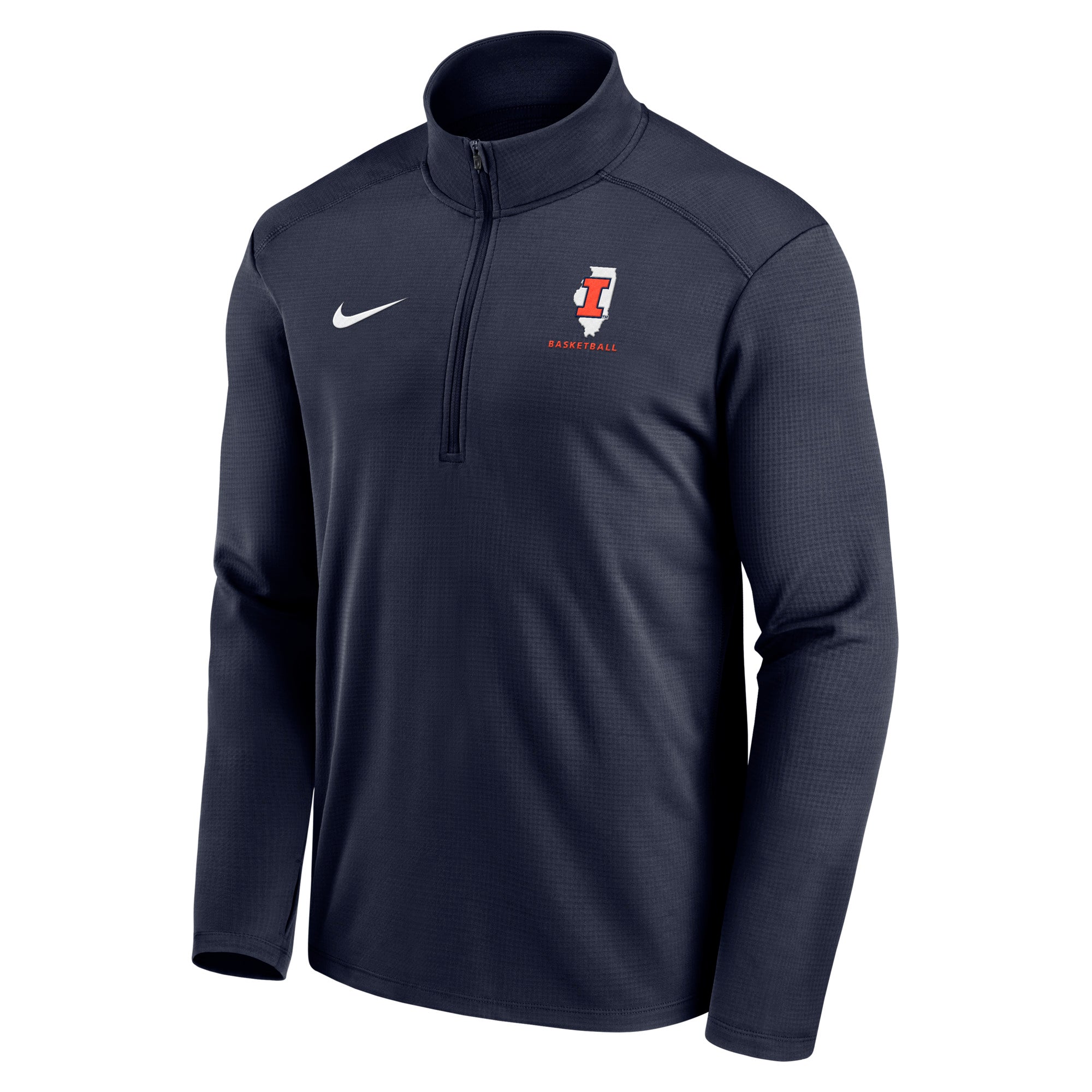 Hail to the orange! This Illinois Basketball pullover is a great way to show your Fighting Illini spirit! This Nike half-zip features a navy body with an orange and white Block I state shape on the left chest that is great for any occasion. Make sure to pick up this new Illinois jacket to show off your Fighting Illini pride! This is an officially licensed collegiate product.