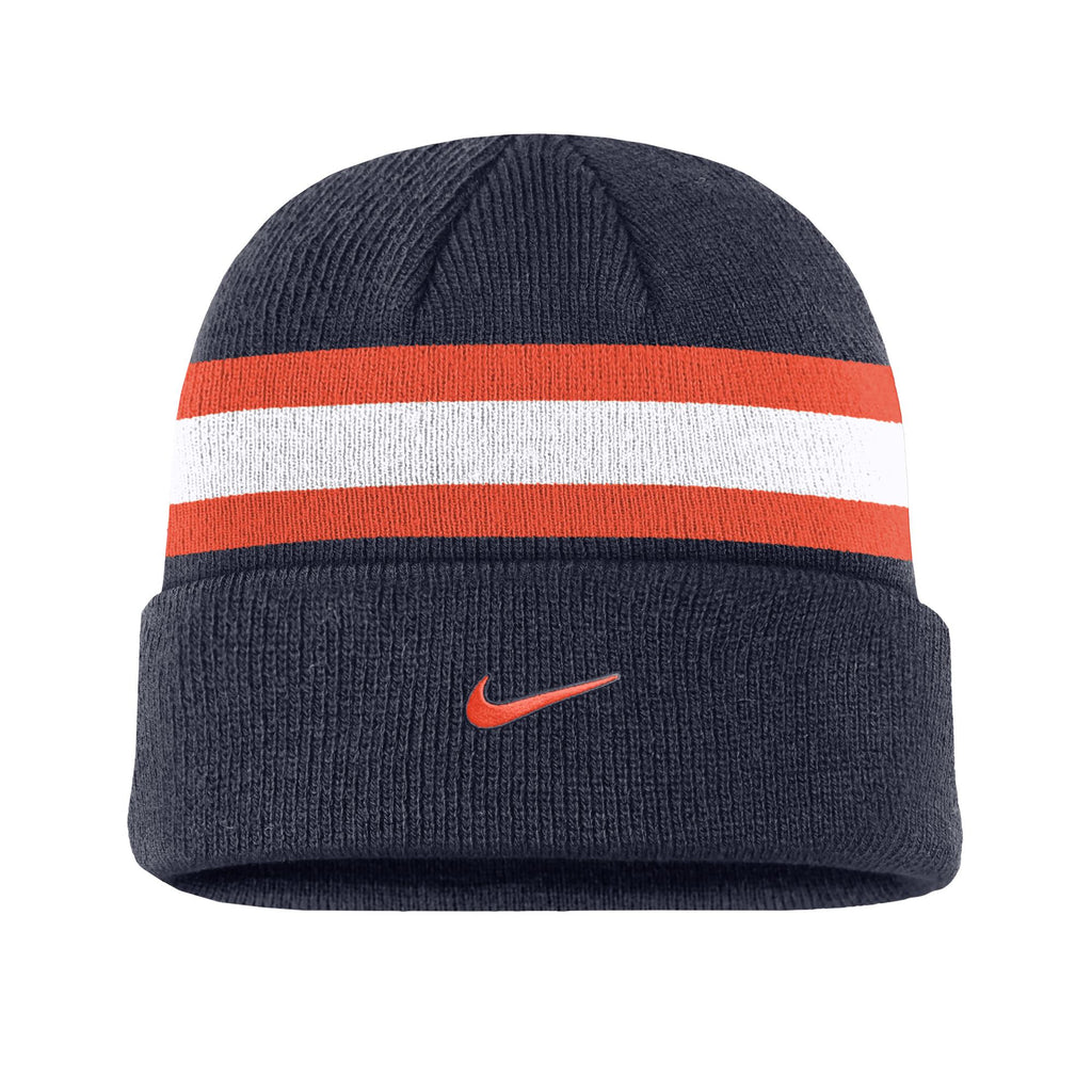 I-L-L! Pick up this Illinois beanie to impress your friends! Once they see you wearing this new Nike hat, they’re going to want one too! This Illinois winter hat features a knit navy body with an orange/white stripe and an orange Block I perfect for showing your Illini spirit at games, tailgates, or just around campus. This is an officially licensed collegiate product.