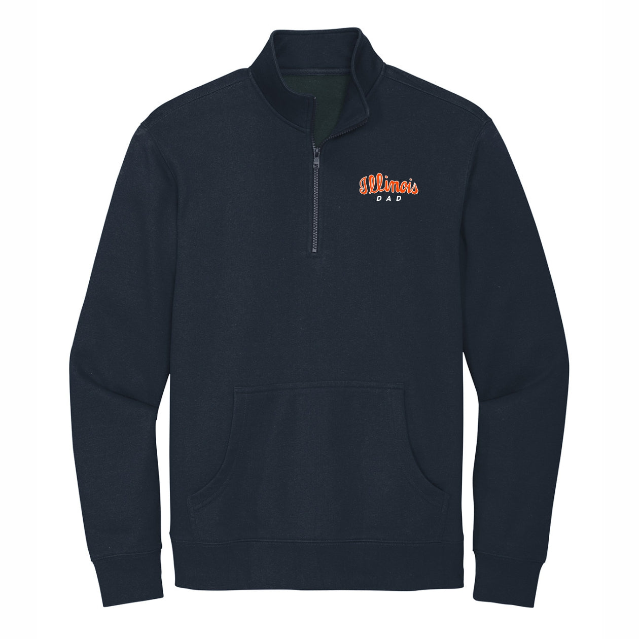 Hail to the orange! This Illinois quarter-zip is a great way to show your dad's Fighting Illini spirit! This men's pullover features a navy body with an orange script "Illinois" on the left chest over a white "Dad" that is great for any occasion. Make sure to pick up this new jacket to show off your Illini pride! This is an officially licensed collegiate product.