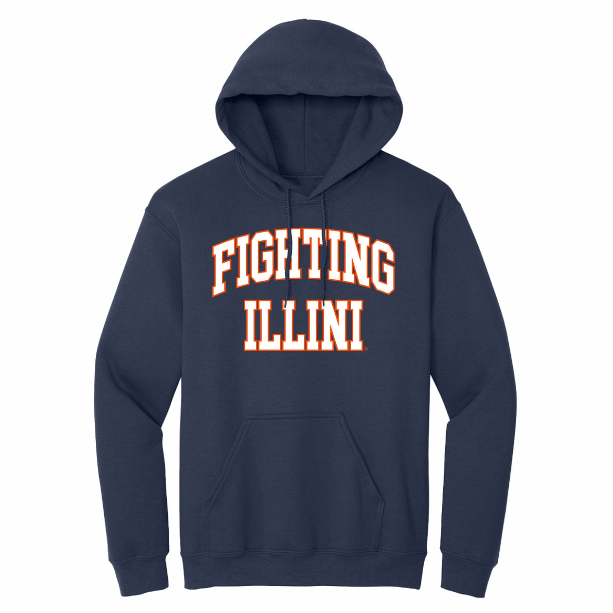 Go Illini! This Illinois hoodie is perfect for wearing around campus or to games. This U of I pullover features a navy body with an orange and white "Fighting Illini" on the front. This hoodie is great for showing your Fighting Illini spirit! This is an officially licensed collegiate product.