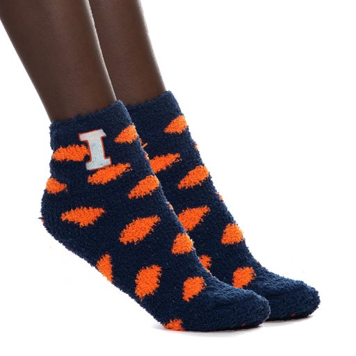 Show your Fighting Illini pride with these new Illinois Fighting Illini Women's Fuzzy Dot Socks. These socks are an officially licensed collegiate product. They feature orange dots on navy socks with the block I logo on the side. The Illinois Fighting Illini Women's Fuzzy Dot Socks are the perfect piece to show your Fighting Illini spirit on game days!