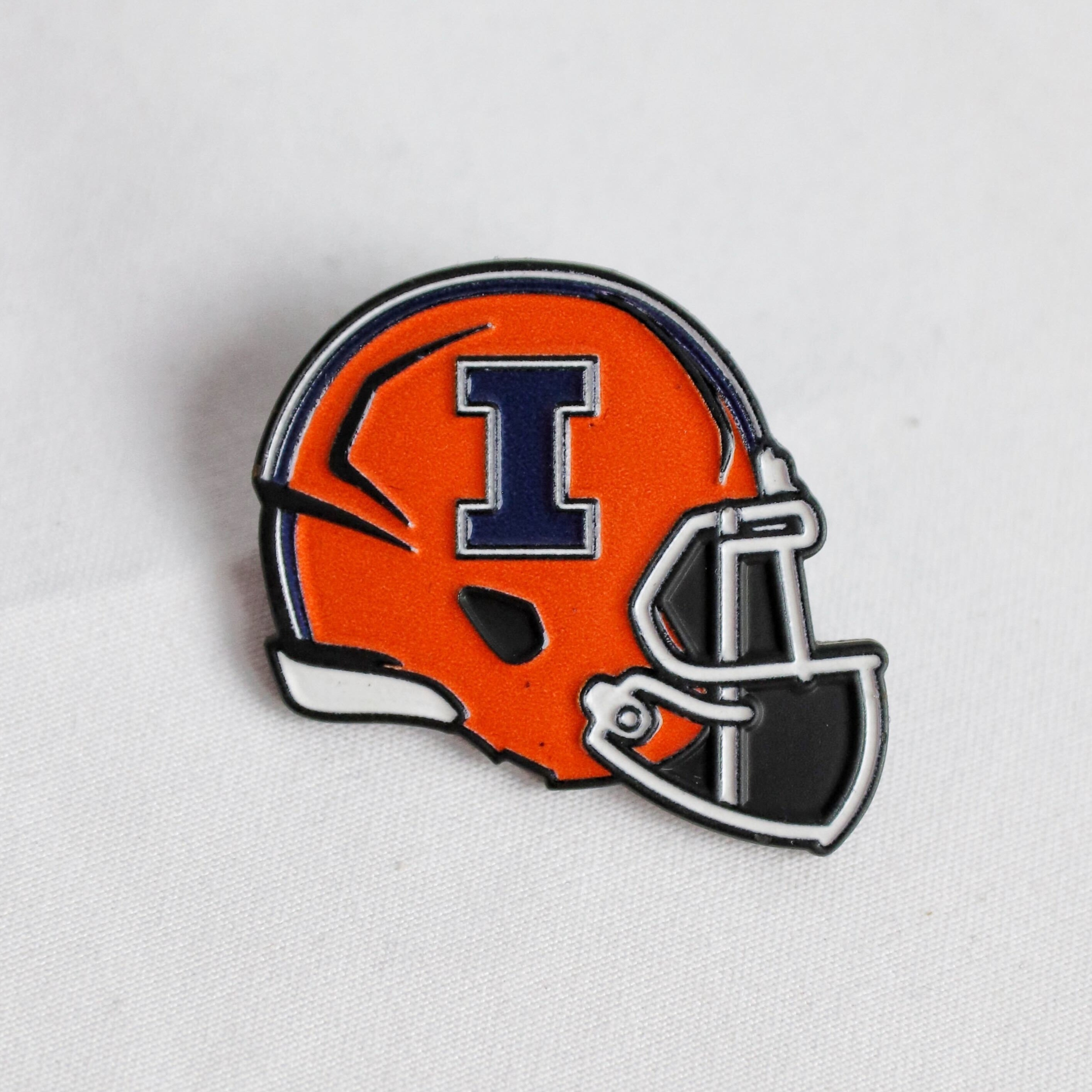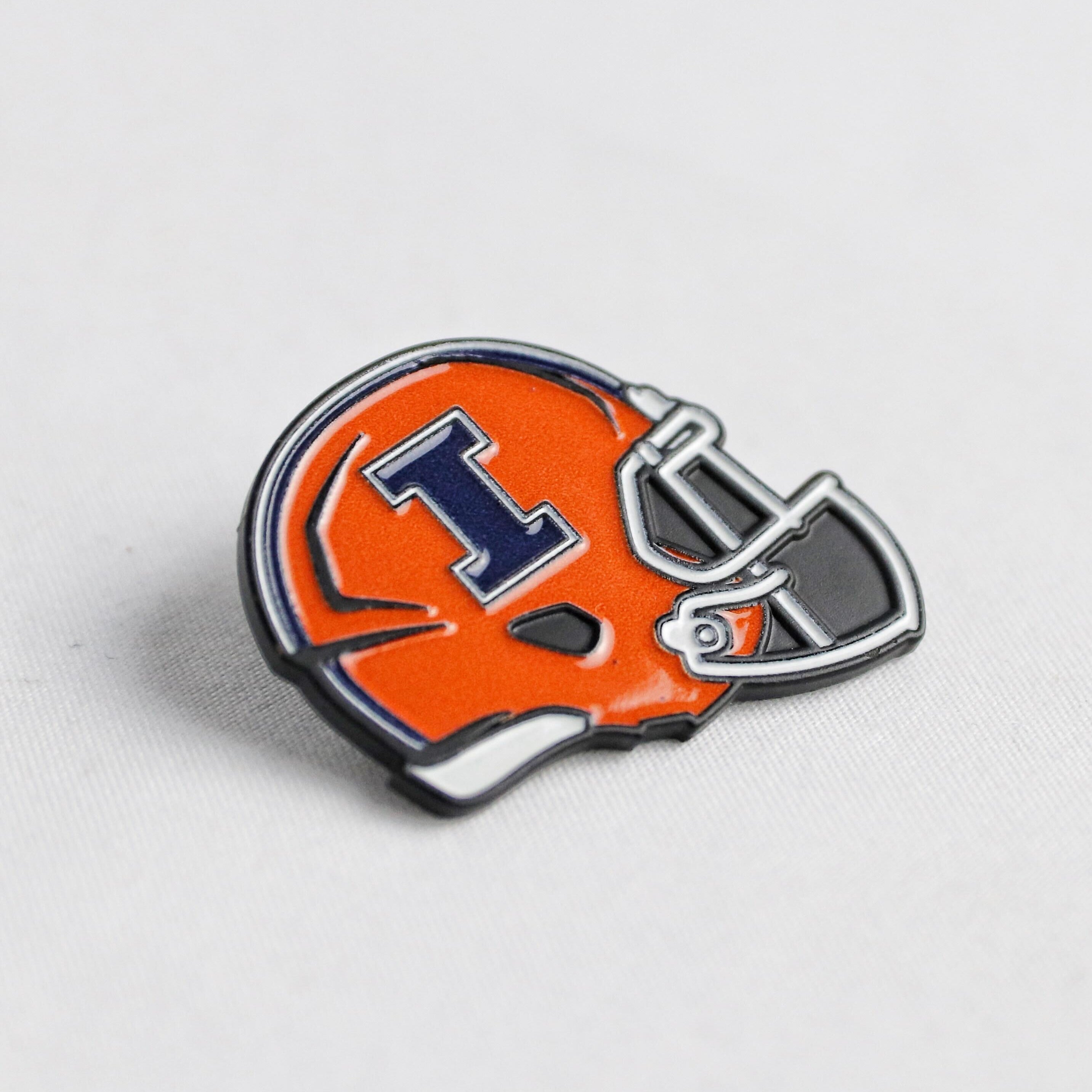 ILL-INI! Gear up for game day with this Illinois Football helmet pin. This pin features an orange helmet with a navy Block I that Illini fans will love. Show your school spirit with this special Illini collectible and cheer on Illinois in style! This is an officially licensed collegiate product.