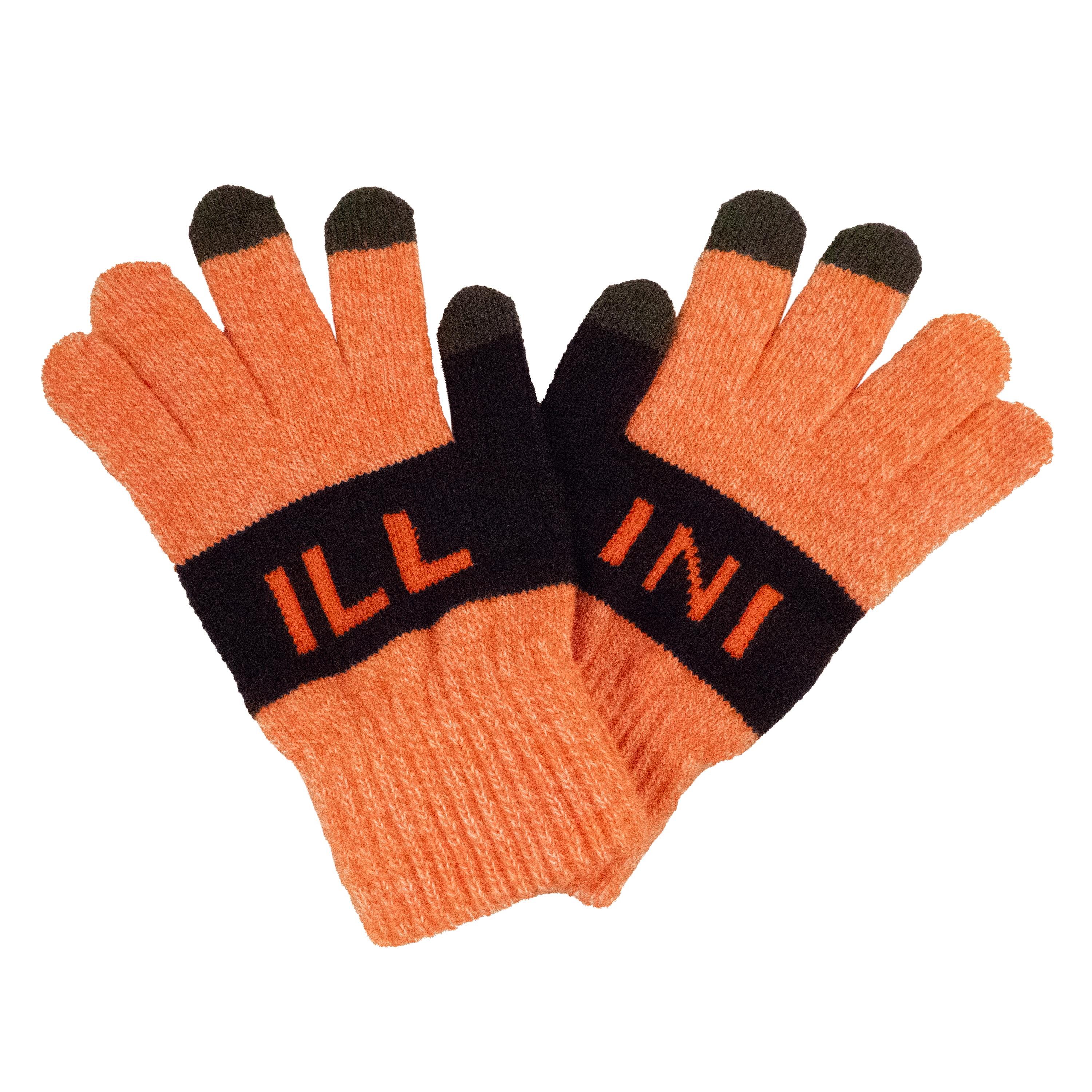 Represent the Illini everywhere you go with these Illinois gloves! These gloves come with an orange body alongside navy fingertips and design on the backs of the hands that spell out "ILL-INI" across the two gloves that make them a must-have. Whether you’re in the stands or walking across campus, these knit glvoes will keep your Fighting Illini spirit strong! This is an officially licensed collegiate product.