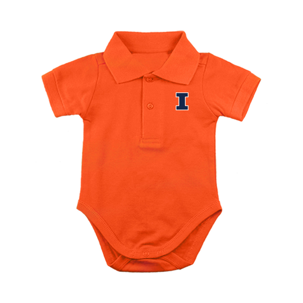 Go Illini! This Illinois infant romper polo is perfect for your little one! This polo romper features an orange body with a navy Block I that will really make your little one's Illinois spirit shine through! This is an officially licensed collegiate product.