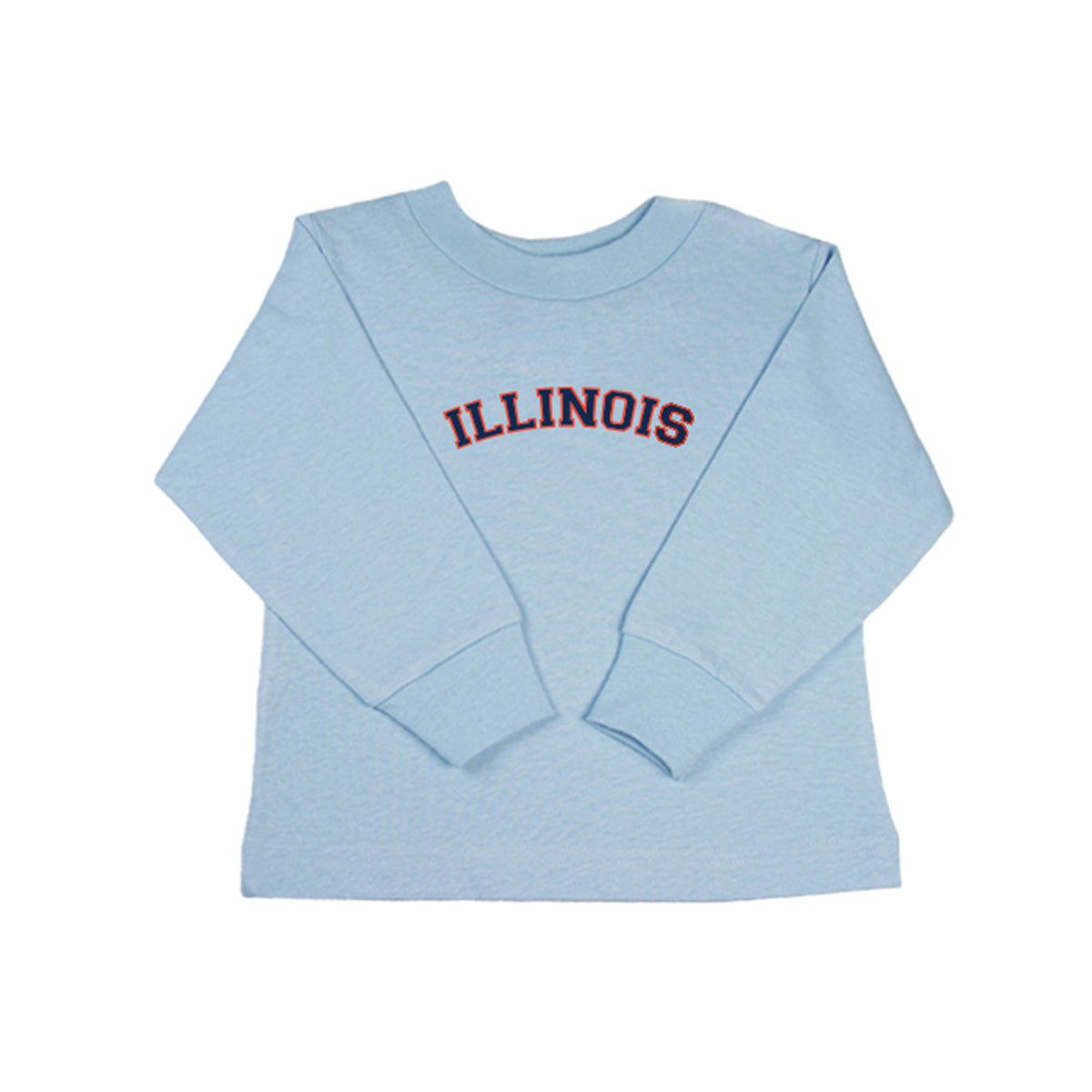 I-L-L! Pick up this Illinois long-sleeve shirt to really show your Illini spirit! This toddler shirt features a light blue body with an orange and navy "Illinois" on the front that will make an unforgettable addition to your toddler's Illini wardrobe! Get one online or in-store today! This is an officially licensed collegiate product.