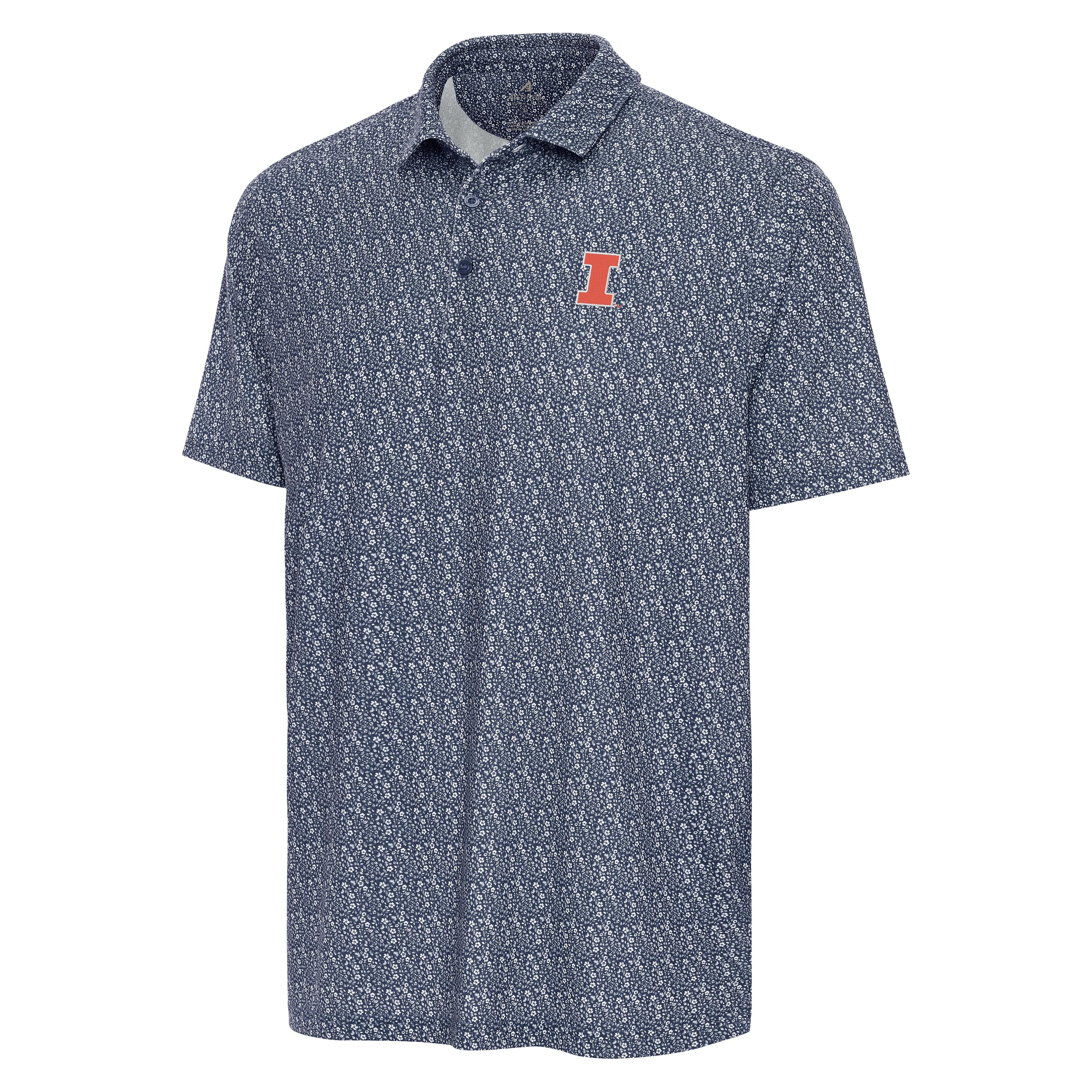 Show your Orange and Blue pride! This Illinois polo is perfect for any Illini fan. This men's Antigua polo features a navy/white floral body with an orange Block I embroidered on the left chest that makes it great for games, tailgates, or campus wear. Don’t miss out on this Illinois business casual piece to show your Fighting Illini spirit! This is an officially licensed collegiate product.