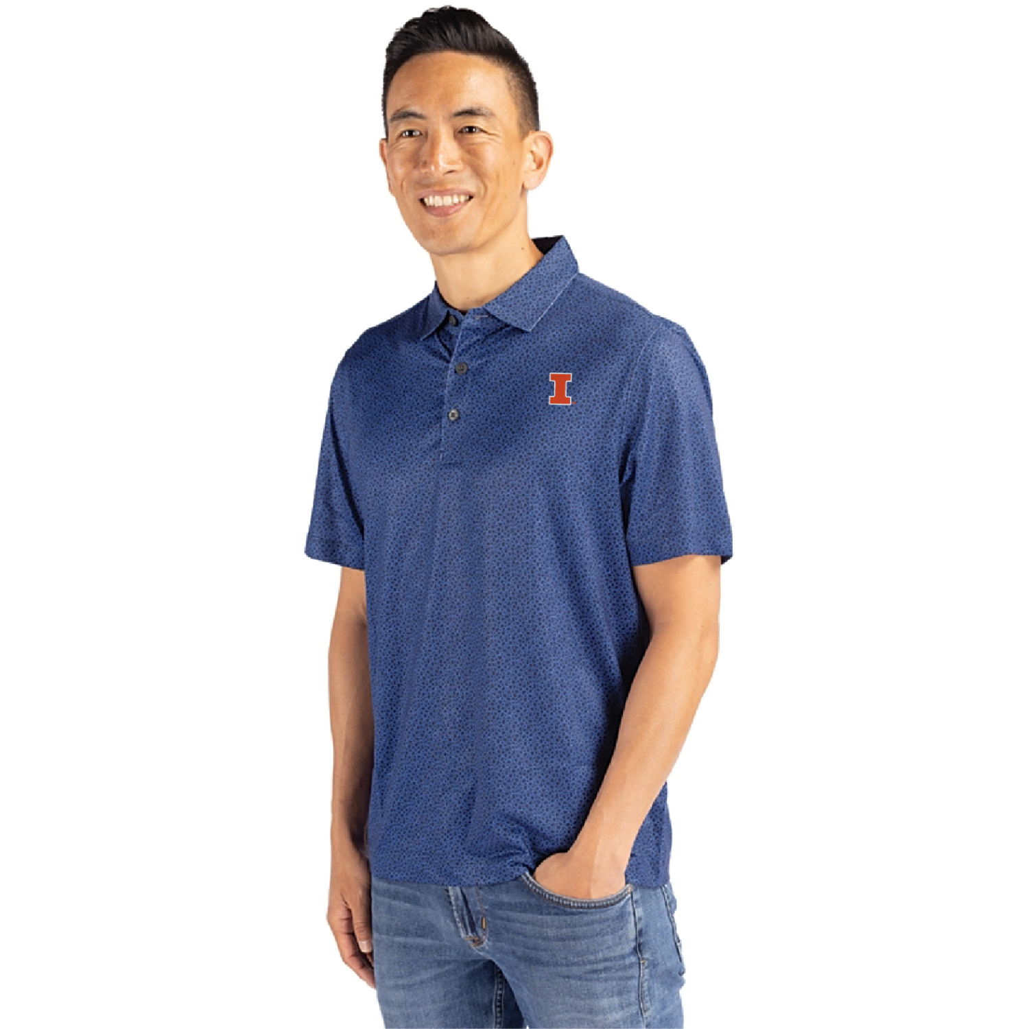Show your Orange and Blue pride! This Illinois polo is perfect for any Illini fan. This men's polo features a subtly-patterned navy body with an orange Block I on the left chest that makes it great for games, tailgates, or campus wear. Don’t miss out on this exclusive Cutter & Buck polo to show your Fighting Illini spirit! This is an officially licensed collegiate product.