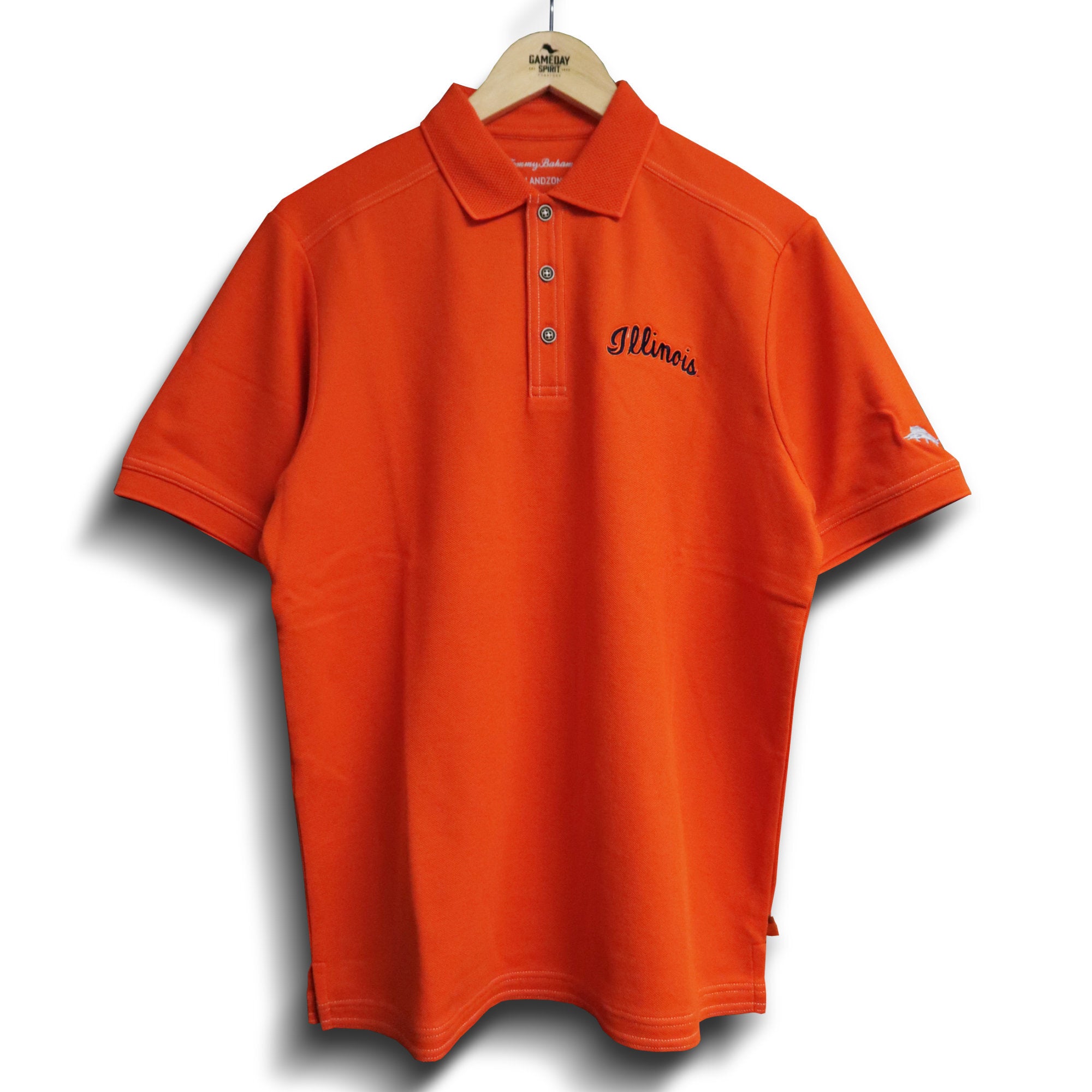 Go Illini! This Illinois polo is perfect for wearing around campus or to games. This men's Tommy Bahama polo features an orange body with a navy script Illinois on the left chest. This Fighting Illini polo is great for showing your U of I spirit! This is an officially licensed collegiate product.