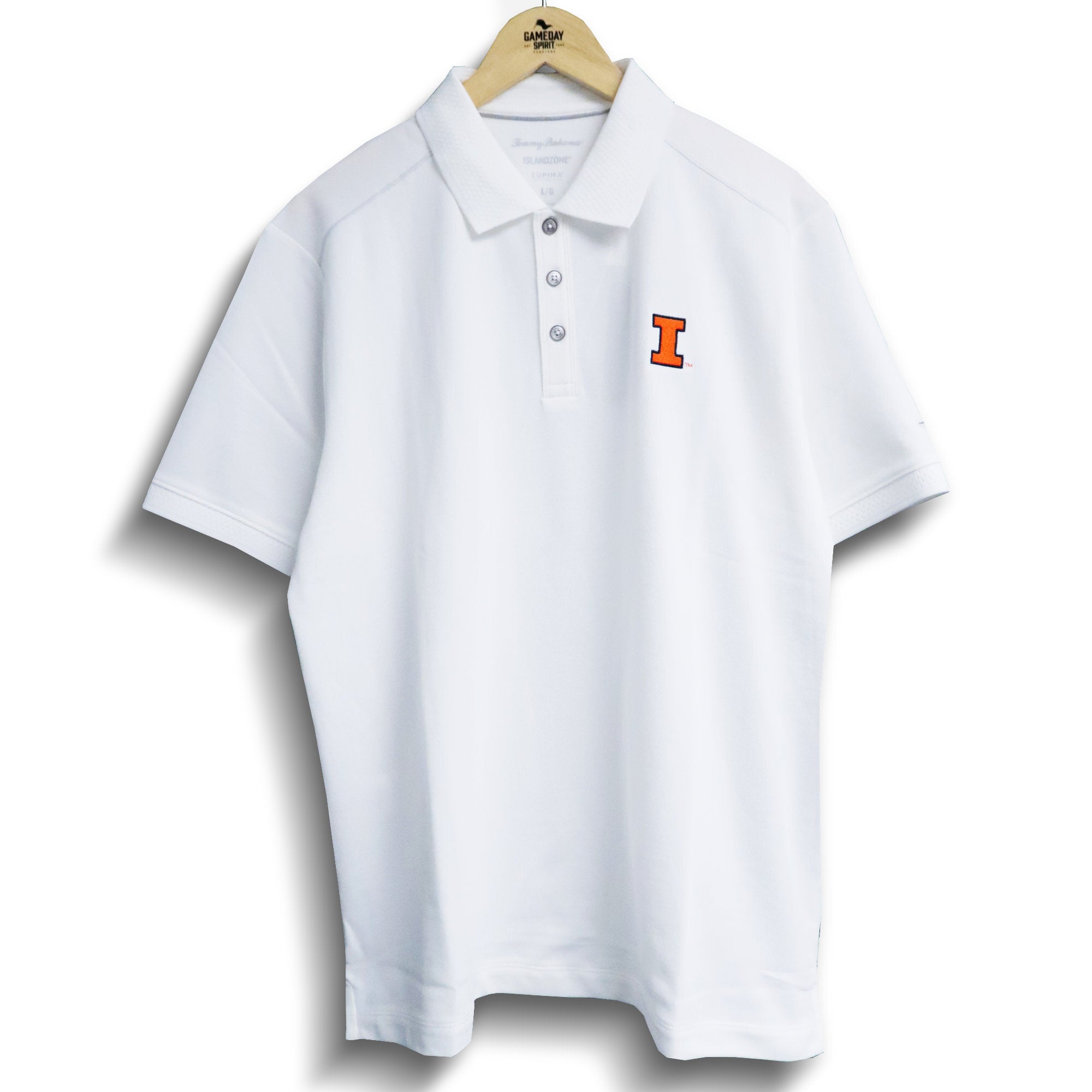 ILL-INI! Gear up for game day with this Illinois polo. This men's Tommy Bahama polo features a comfortable, breathable white body with an orange Block I on the left chest that Illini fans will love. Show your school spirit with this U of I polo and cheer on Illinois in style! This is an officially licensed collegiate product.