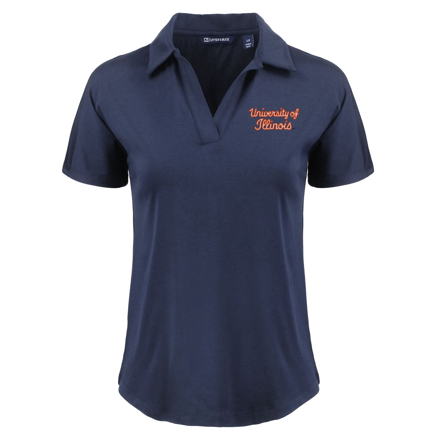 Go Illini! This Illinois polo is perfect for wearing around campus or to games. This women's polo features a navy body with an orange and white script "University of Illinois". This Cutter & Buck top is great for showing your Fighting Illini spirit! This is an officially licensed collegiate product.